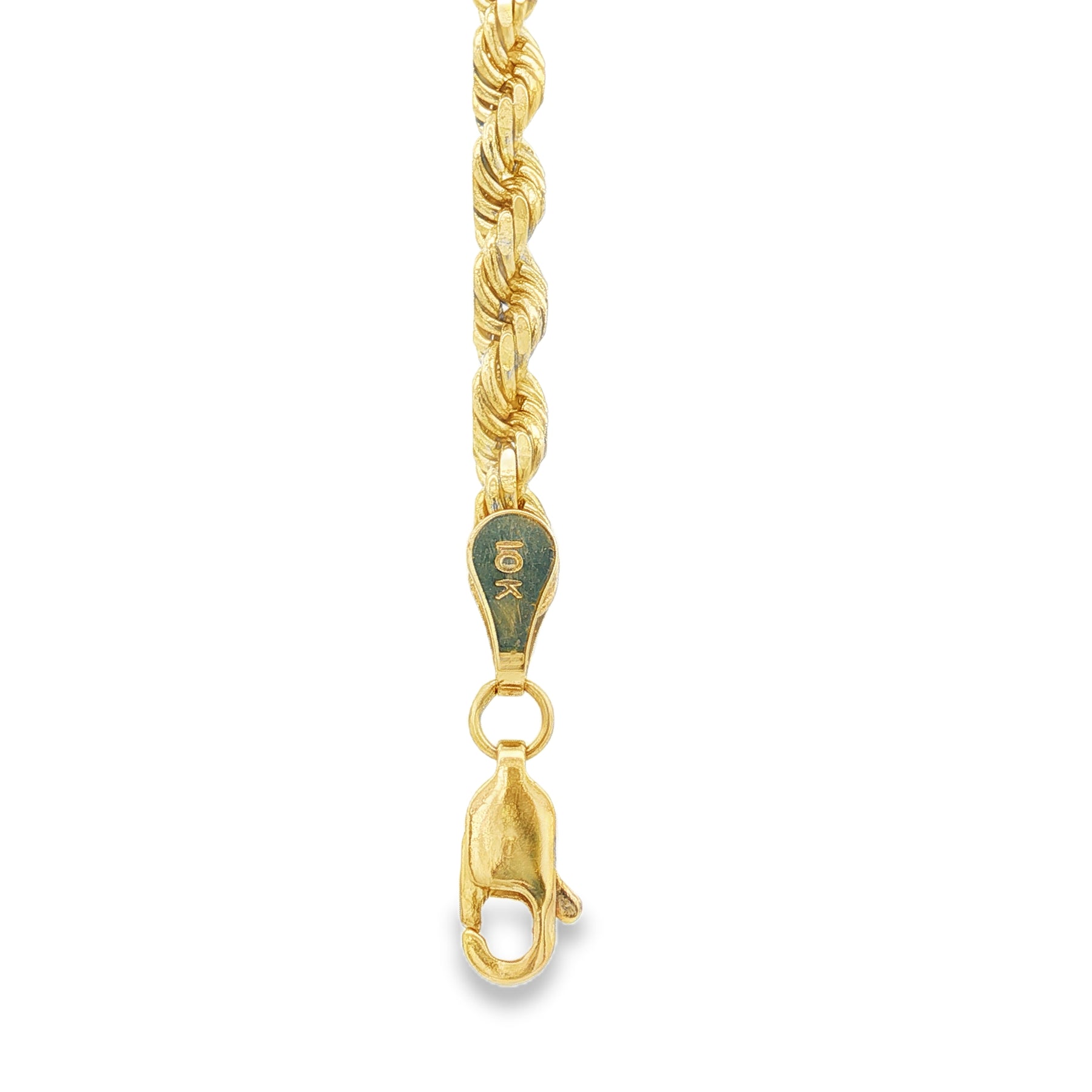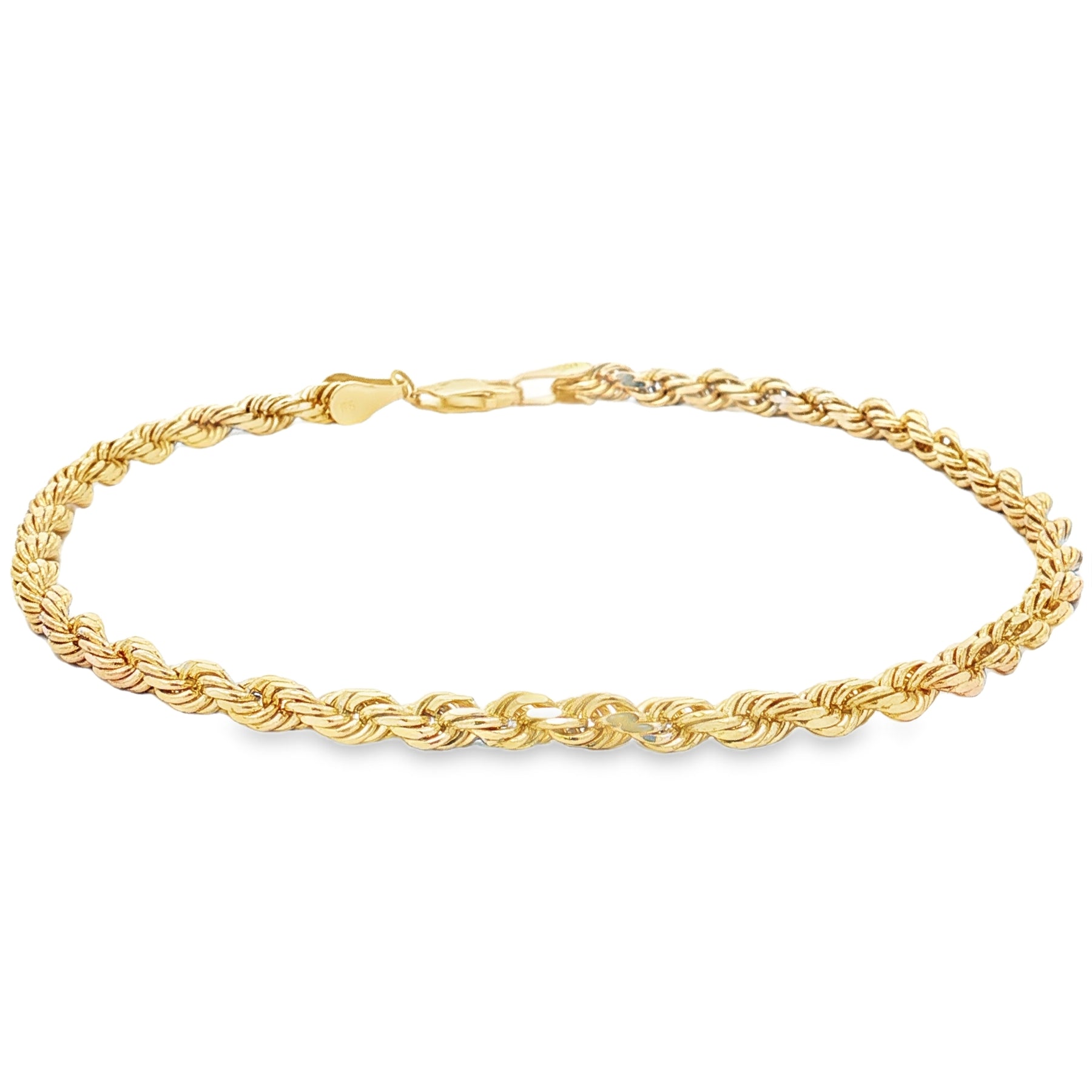 Add classic shine to your look with this 10K yellow gold rope chain bracelet, designed with a rich twist pattern that catches the light from every angle. Measuring 3.4mm wide and 9.5 inches long, this bracelet offers a durable yet comfortable fit, secured with a lobster clasp for everyday wear.