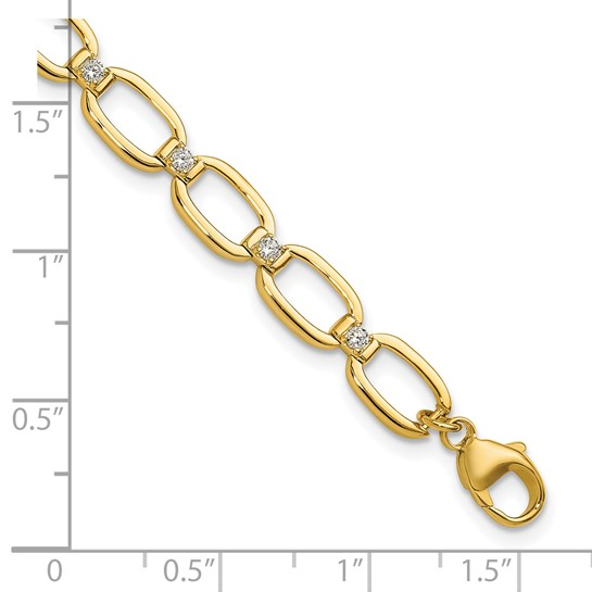 Crafted in luxurious 14K yellow gold, this elegant oval link bracelet features a total of .5 carat lab grown diamonds in VS/SI+ clarity and G+ color. Each link is accented with a sparkling diamond, blending timeless design with modern brilliance. The bracelet measures 6.75 inches with a .25-inch extender for a secure and comfortable fit.
