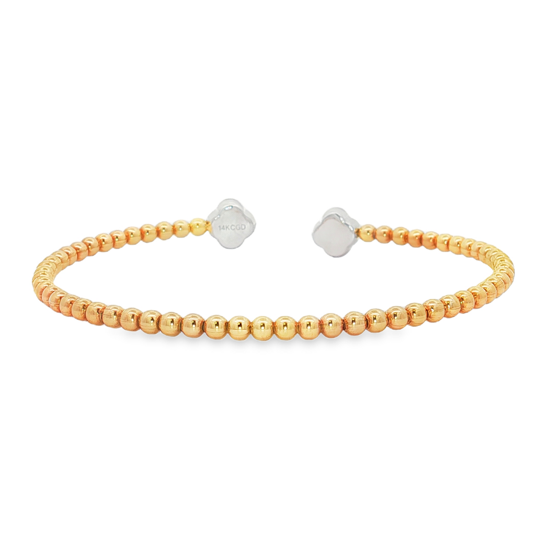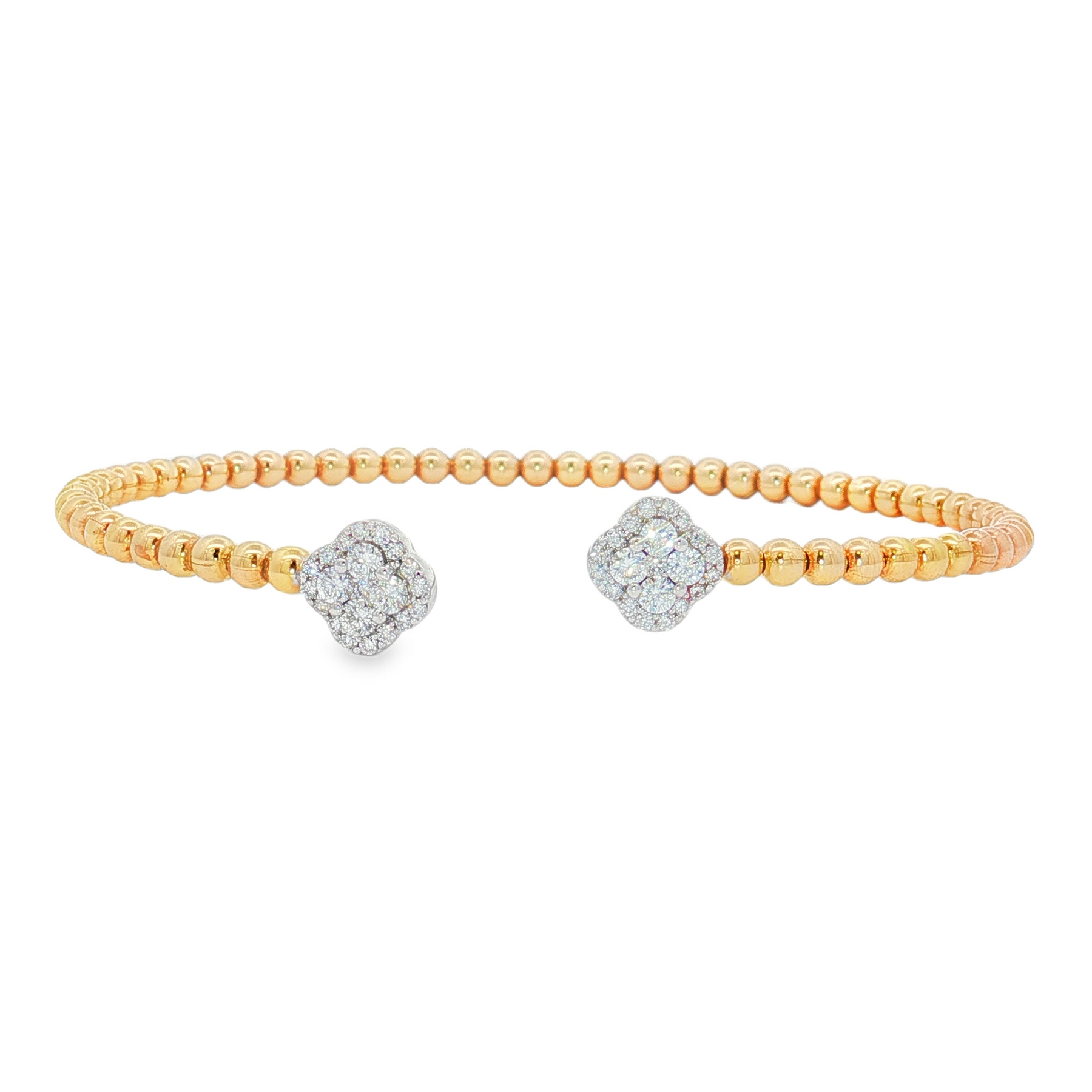 A chic blend of modern design and timeless sparkle, this 14K yellow and white gold bangle is crafted to elevate any look. The flexible beaded design ends with diamond clusters that glimmer with brilliance, making it a versatile piece that transitions effortlessly from day to night.