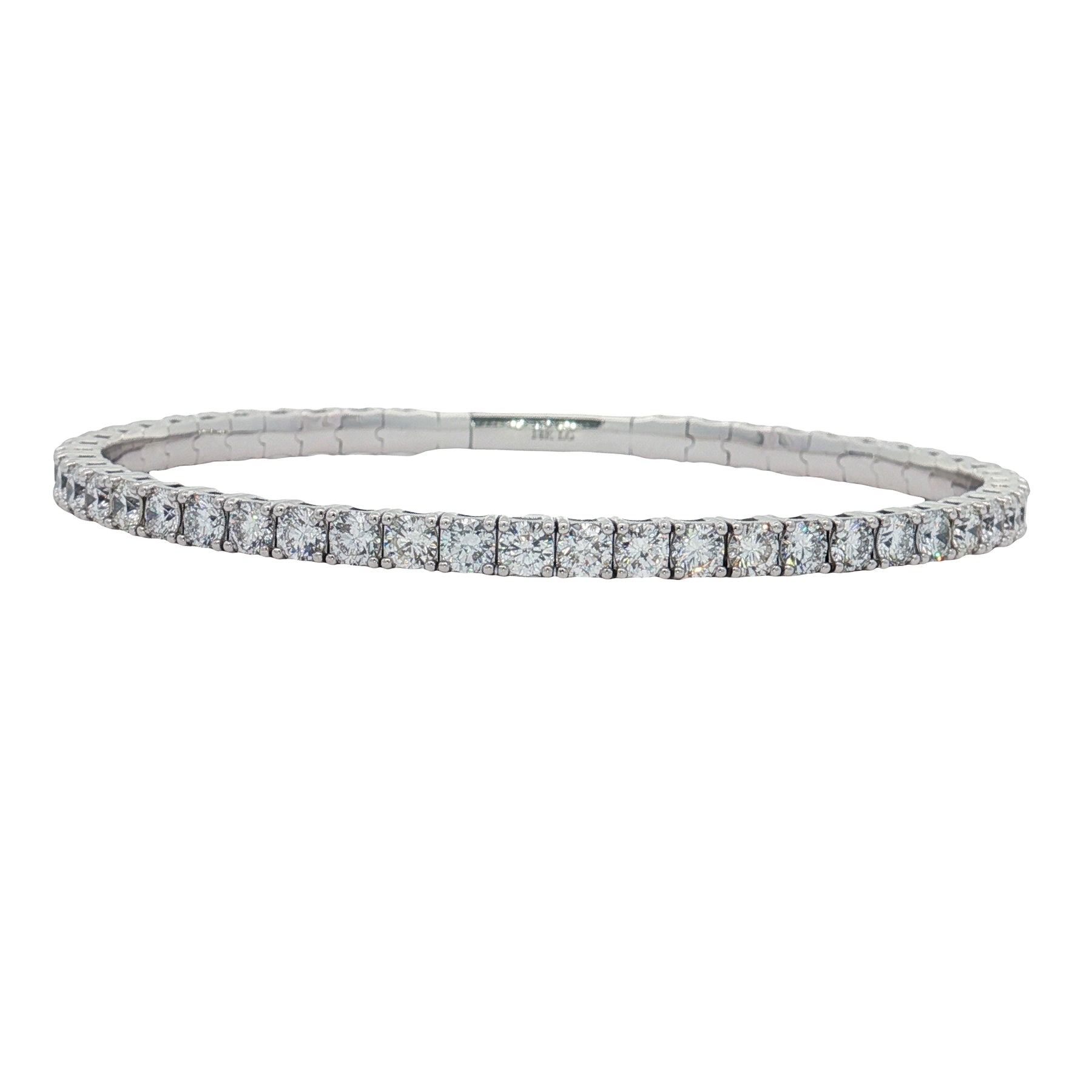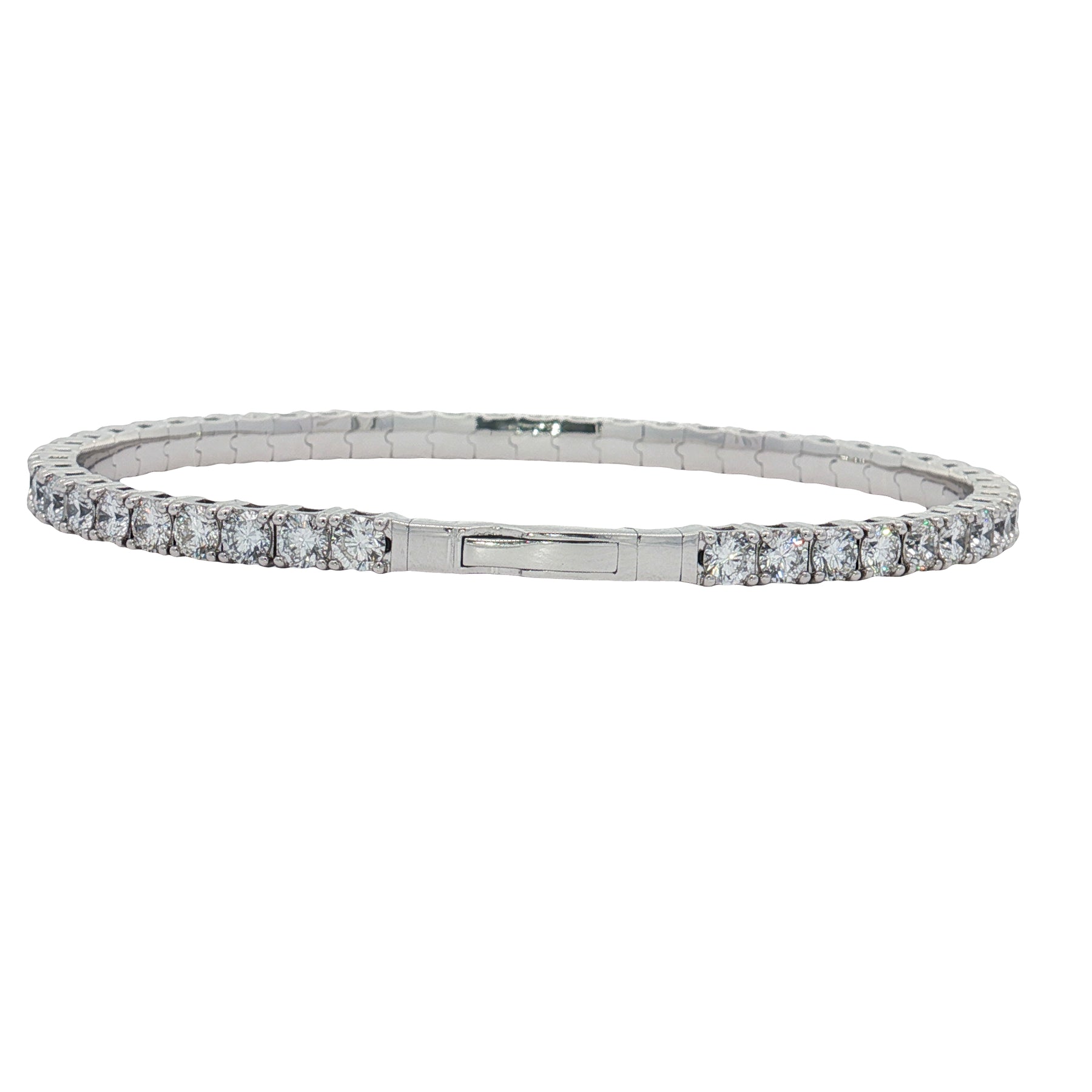 A captivating 14K white gold 6.75-inch flex bangle adorned with 6.1 carats of lab-grown diamonds. The flexible design ensures comfort while maximizing sparkle, making it the ultimate statement piece.