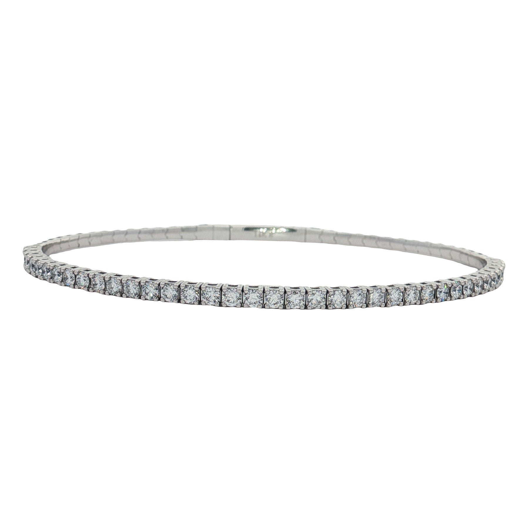 Crafted in sleek 14K white gold, this elegant bangle bracelet features an uninterrupted line of shimmering lab-grown diamonds totaling 1.4 carats. Each diamond is hand-set to create a brilliant, continuous sparkle that catches the light beautifully from every angle.