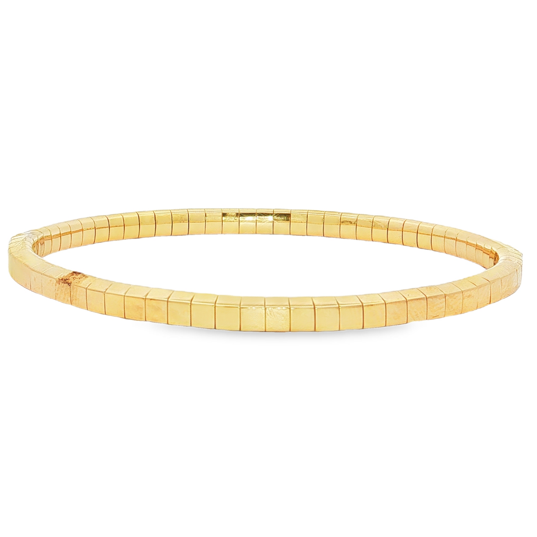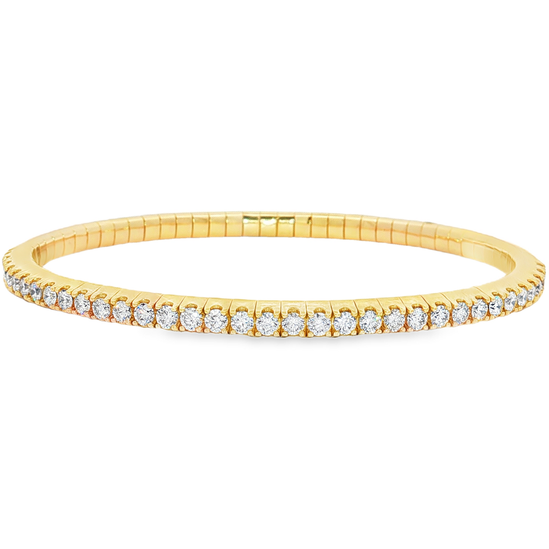 A timeless essential with a modern edge, this 14K yellow gold diamond bangle features a seamless row of brilliant round diamonds totaling 1.85 carats. Designed with flexibility for everyday wear, this piece radiates elegance and sophistication.