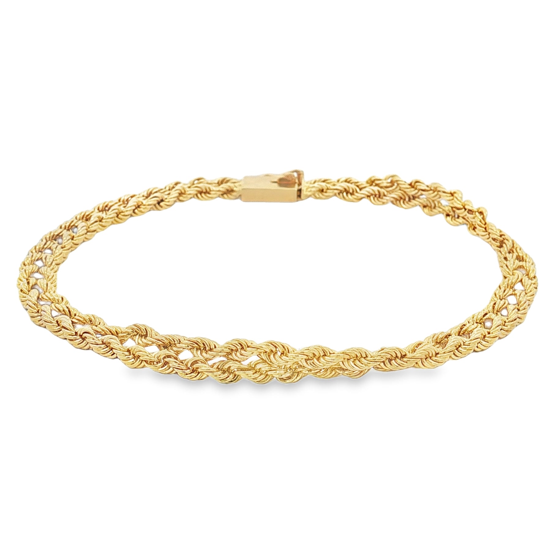 Add timeless sophistication to your look with this 14K yellow gold double rope bracelet, featuring an elegant 4.5mm width and 7.25-inch length. The intricate double rope design catches the light beautifully, while the secure box clasp ensures lasting comfort and durability.