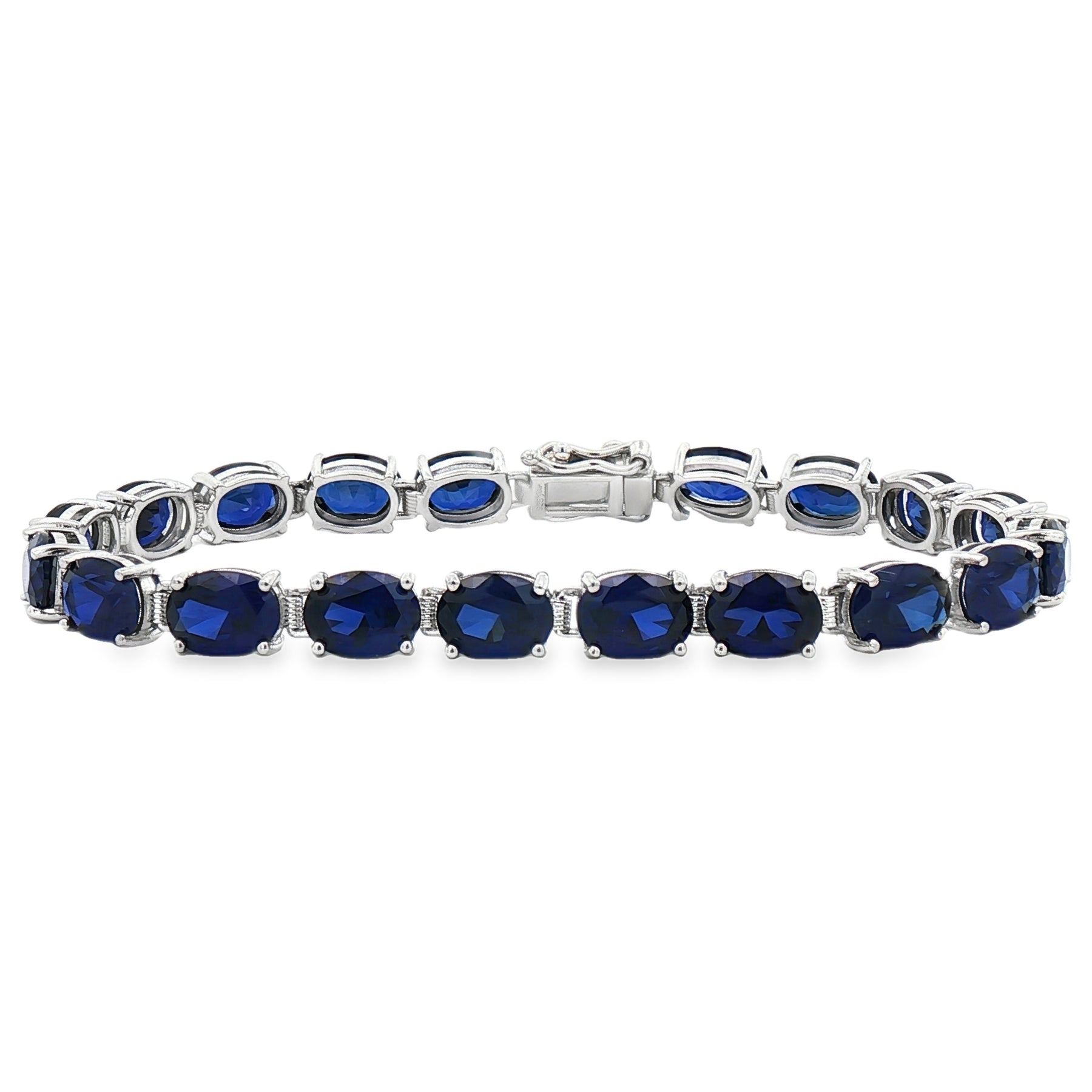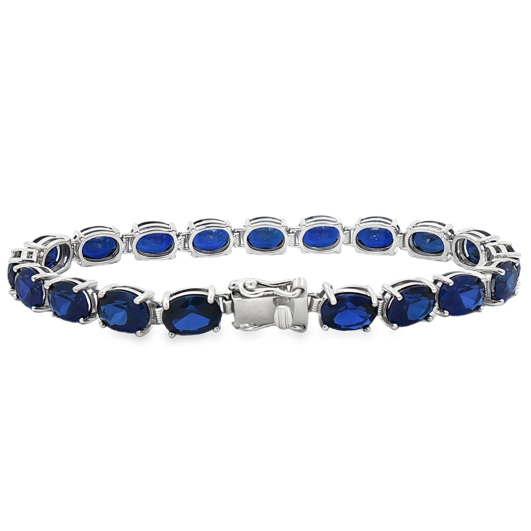 A bold statement of elegance, this sterling silver bracelet showcases the brilliance of deep blue lab-grown sapphires. Each stone is expertly faceted to radiate unmatched sparkle, making this a timeless piece for both daily wear and special occasions.