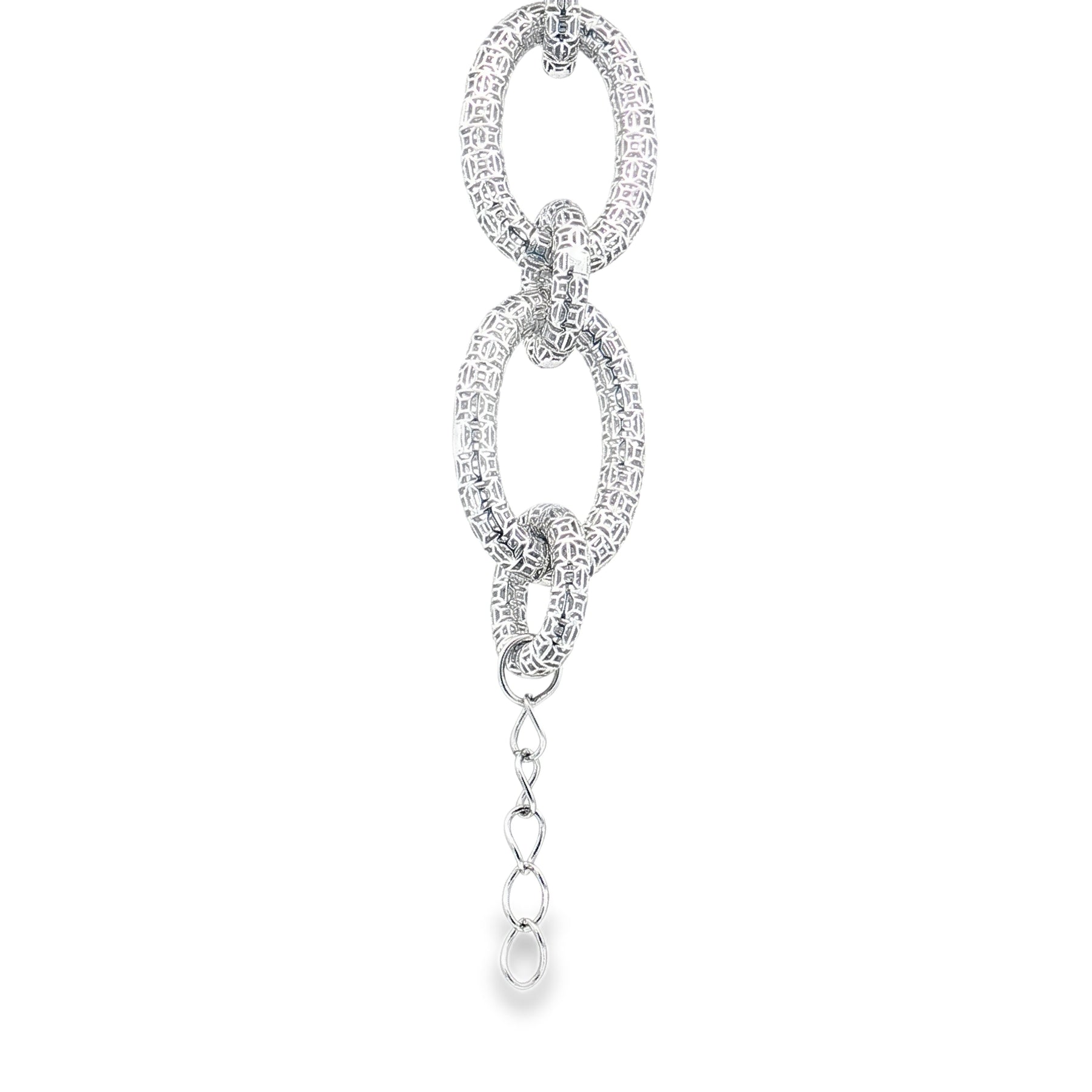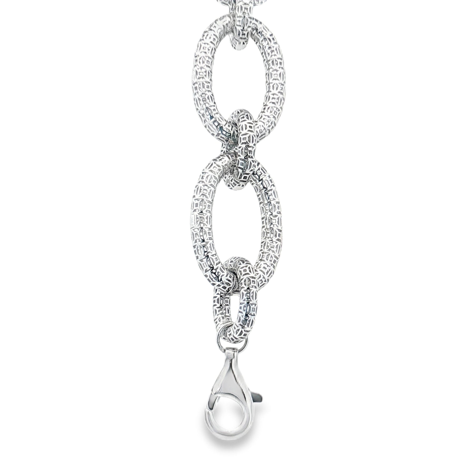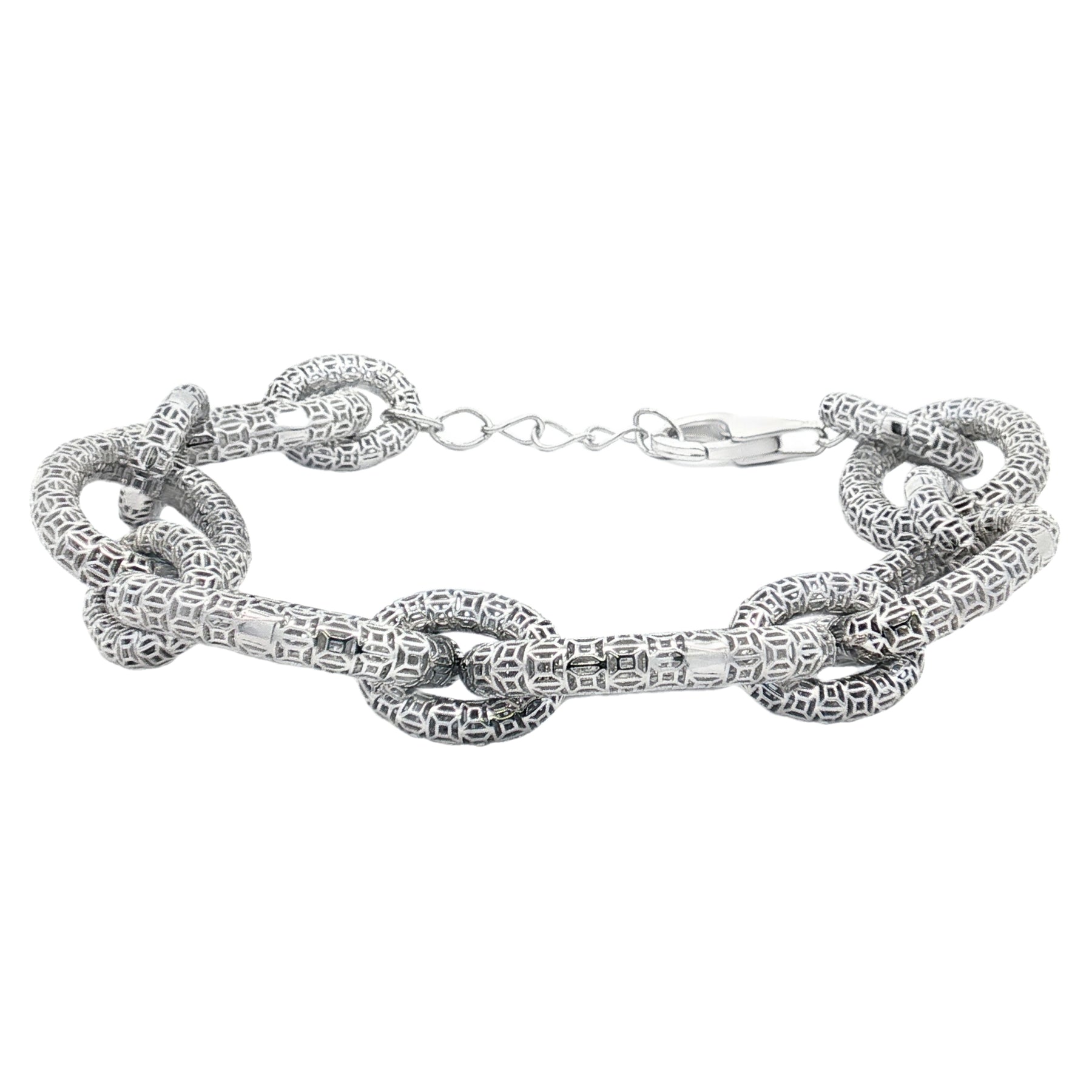 This bold 8.75-inch sterling silver bracelet showcases an innovative 3D-printed link design with intricate geometric texture and a polished modern finish. The substantial open-link pattern gives the piece both dimension and style—perfect for making a confident statement.