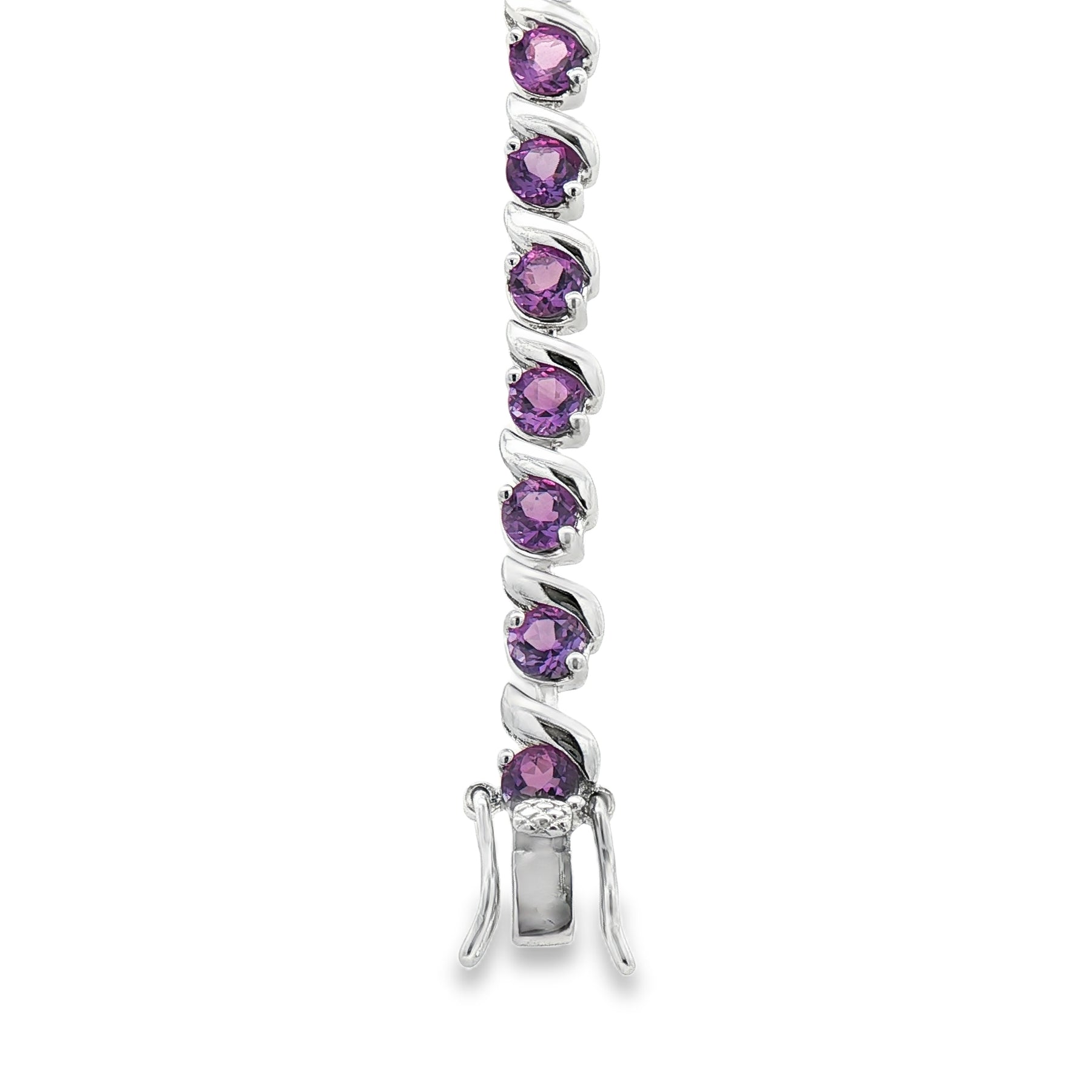 A dazzling bracelet that combines rich color with timeless elegance. This 7.25" sterling silver bracelet features 6.21 carats of lab-grown amethyst, each round stone prong-set in a flowing wave design. The deep purple hue brings both sophistication and vibrance, making it a versatile piece for day or evening wear.