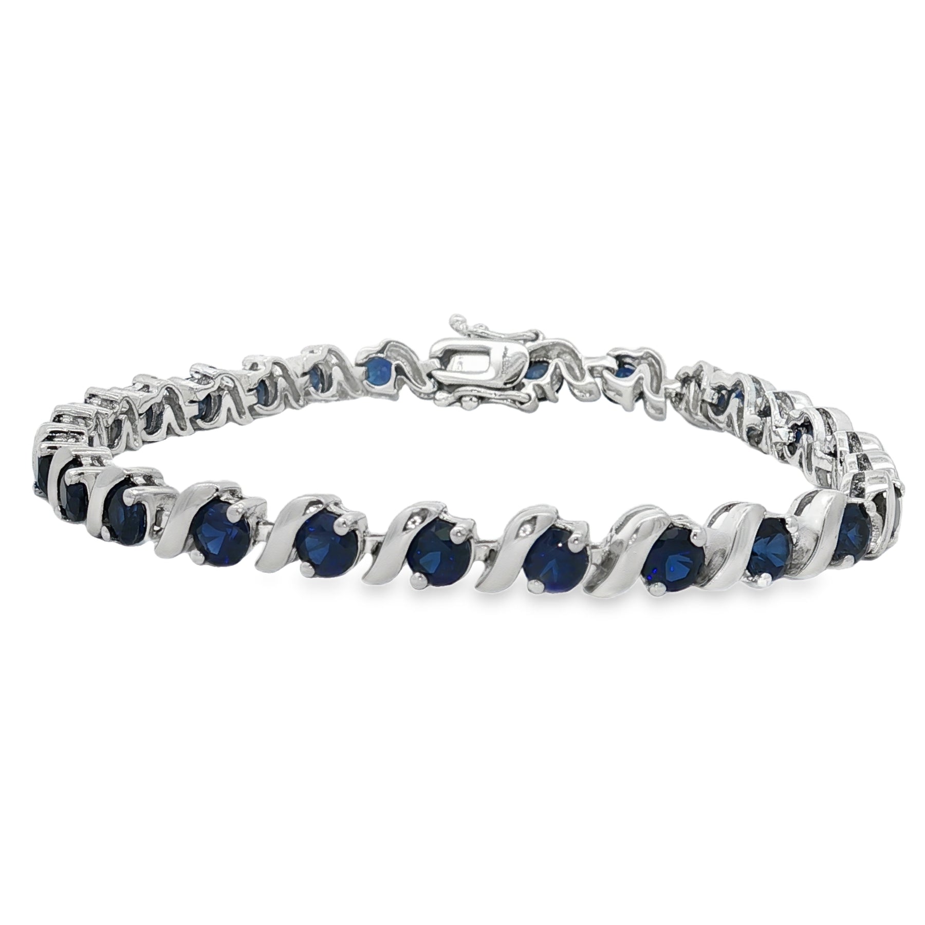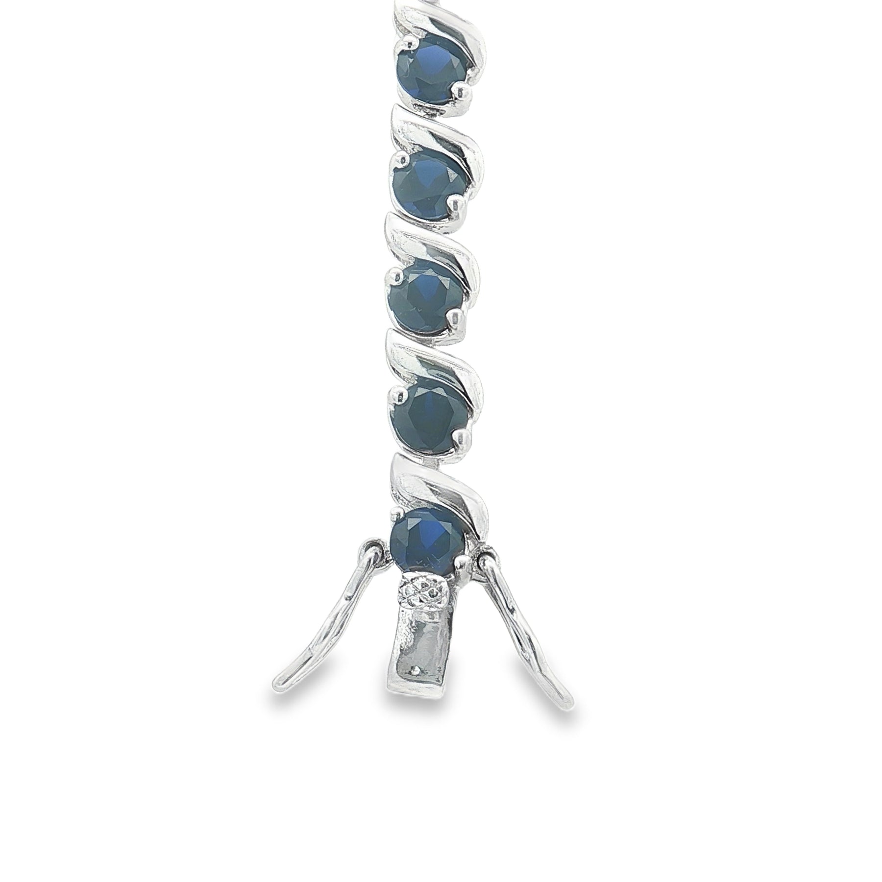 This stunning 7.25" sterling silver bracelet showcases 8.22ct of deep blue lab-grown sapphires, each set in an elegant wave-style link that adds movement and brilliance. The rich sapphire color contrasts beautifully with the polished silver, creating a timeless and eye-catching piece. Finished with a secure box clasp, itβs perfect for both everyday elegance and special occasions.