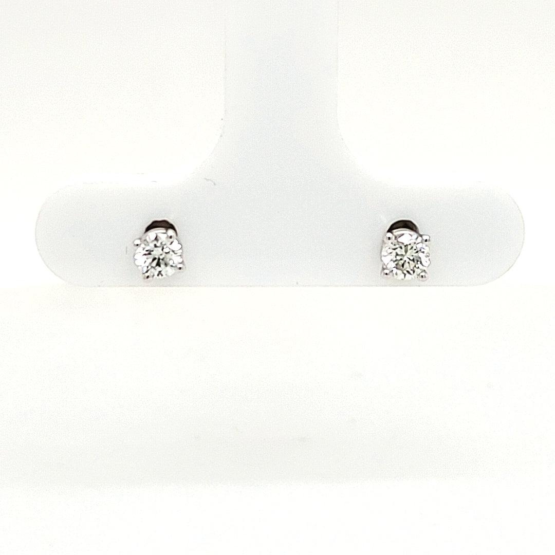 Classic and timeless, these diamond stud earrings are crafted in 14K white gold. Featuring a total weight of .25 carats of round brilliant cut diamonds, graded GH color and I2 clarity, they sparkle with everyday elegance. Secured with friction posts for comfort and wearability, these earrings are the perfect finishing touch for any look.