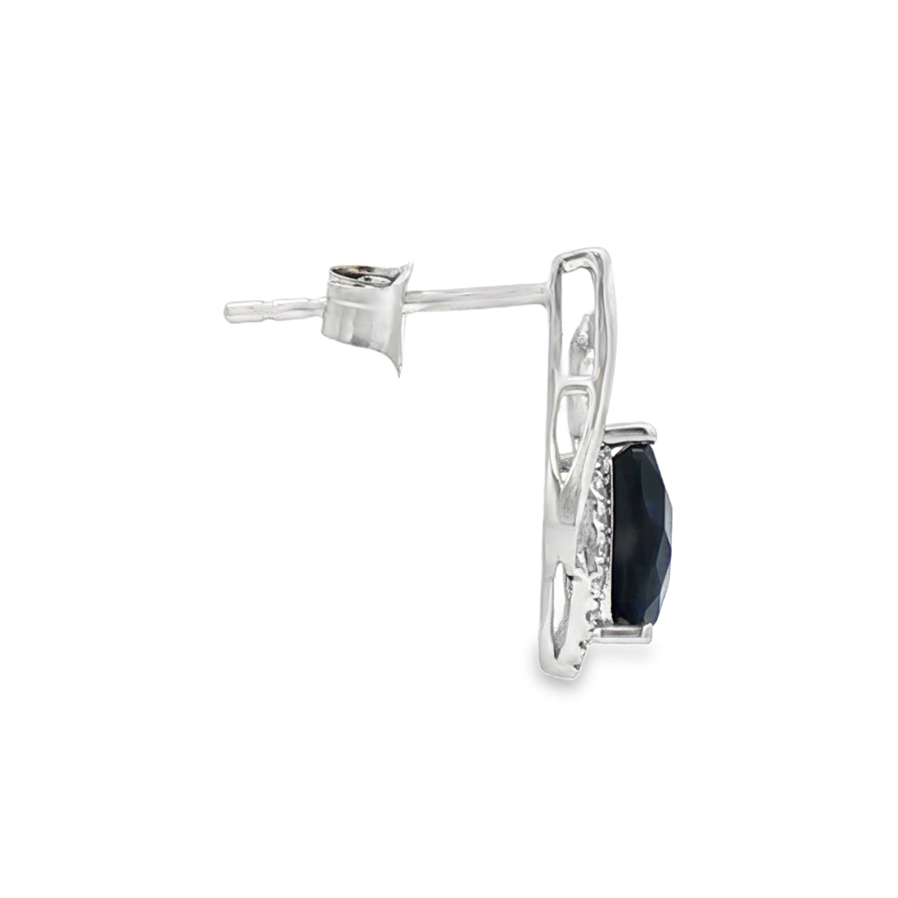 These elegant 14K white gold earrings showcase two pear-shaped lab-grown sapphires totaling 1.95 carats. Each rich blue sapphire is framed by a graceful swirl of polished gold and sparkling natural diamonds totaling .1 carats. Set on secure posts, these earrings offer refined sophistication with a modern ethical touch.