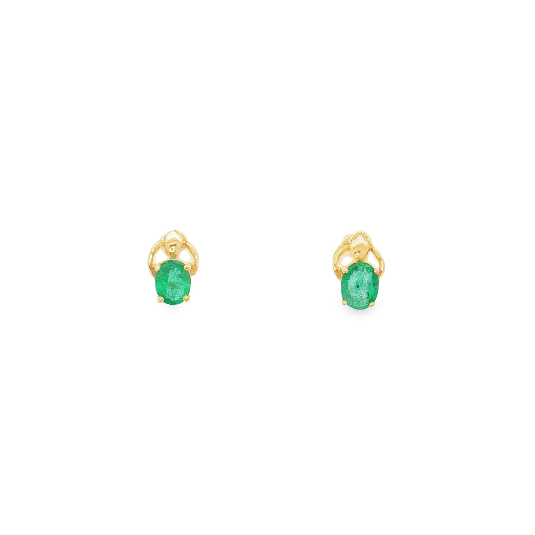Classic and refined, these 14K yellow gold stud earrings feature .44ct total weight of vibrant emeralds. The oval-cut stones are secured in a traditional four-prong setting, allowing their rich green color to shine. Perfect for everyday elegance or as a meaningful gift, these studs bring timeless beauty to any collection.