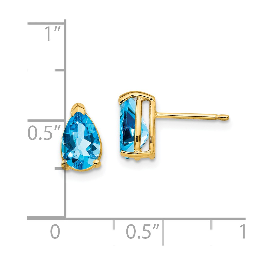 Brilliant and refreshing, these 14K yellow gold stud earrings feature 8x5mm pear-cut Swiss blue topaz gemstones that capture the essence of vivid sky-blue sparkle. Designed with secure post and push-on backs, theyβre perfect for both everyday wear and elegant occasions.