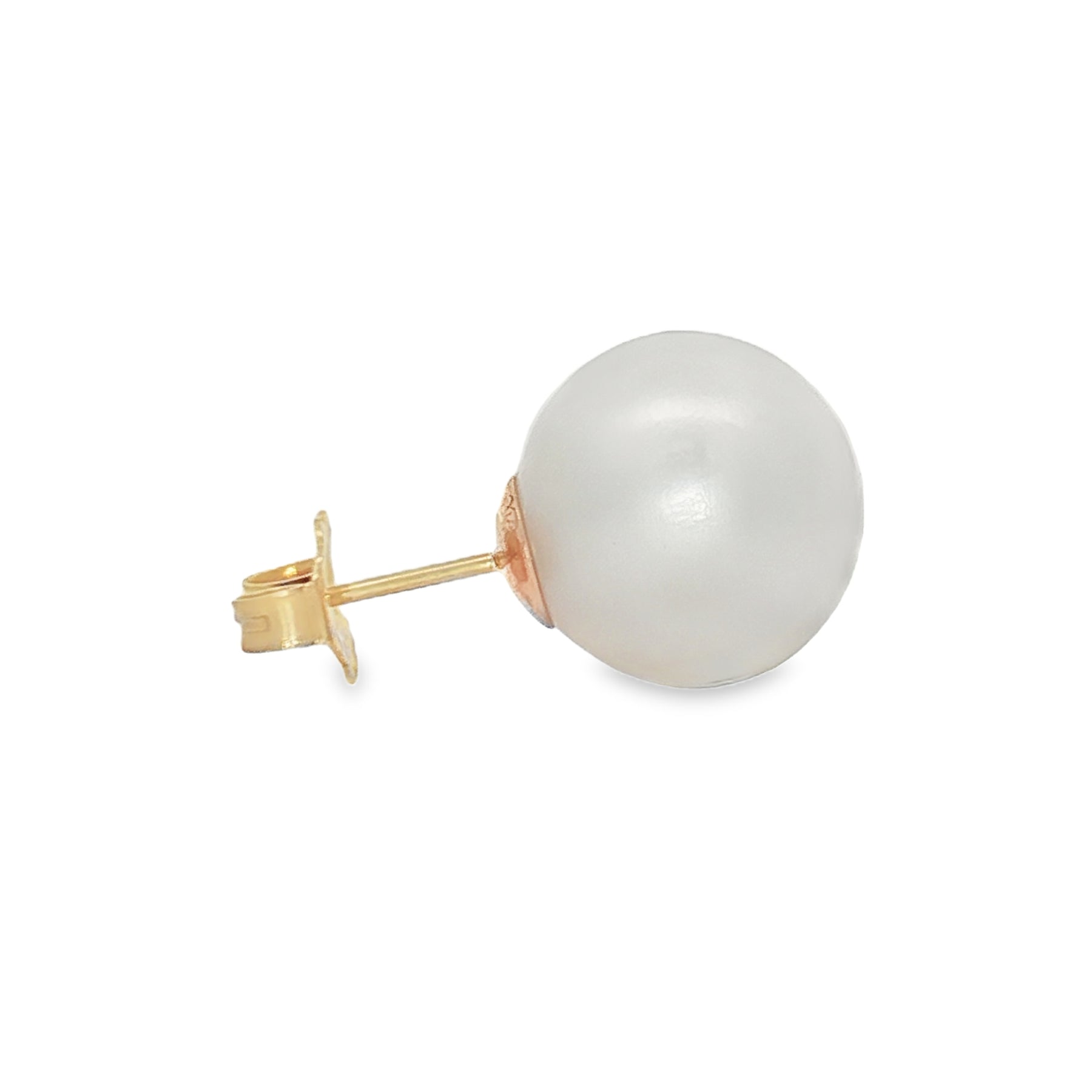 Timeless and radiant, these 14K yellow gold pearl stud earrings feature large 11–12mm freshwater pearls that glow with elegant luster. Each pearl is mounted on a polished gold post with secure friction backs—perfect for those who appreciate classic beauty with a touch of sophistication.