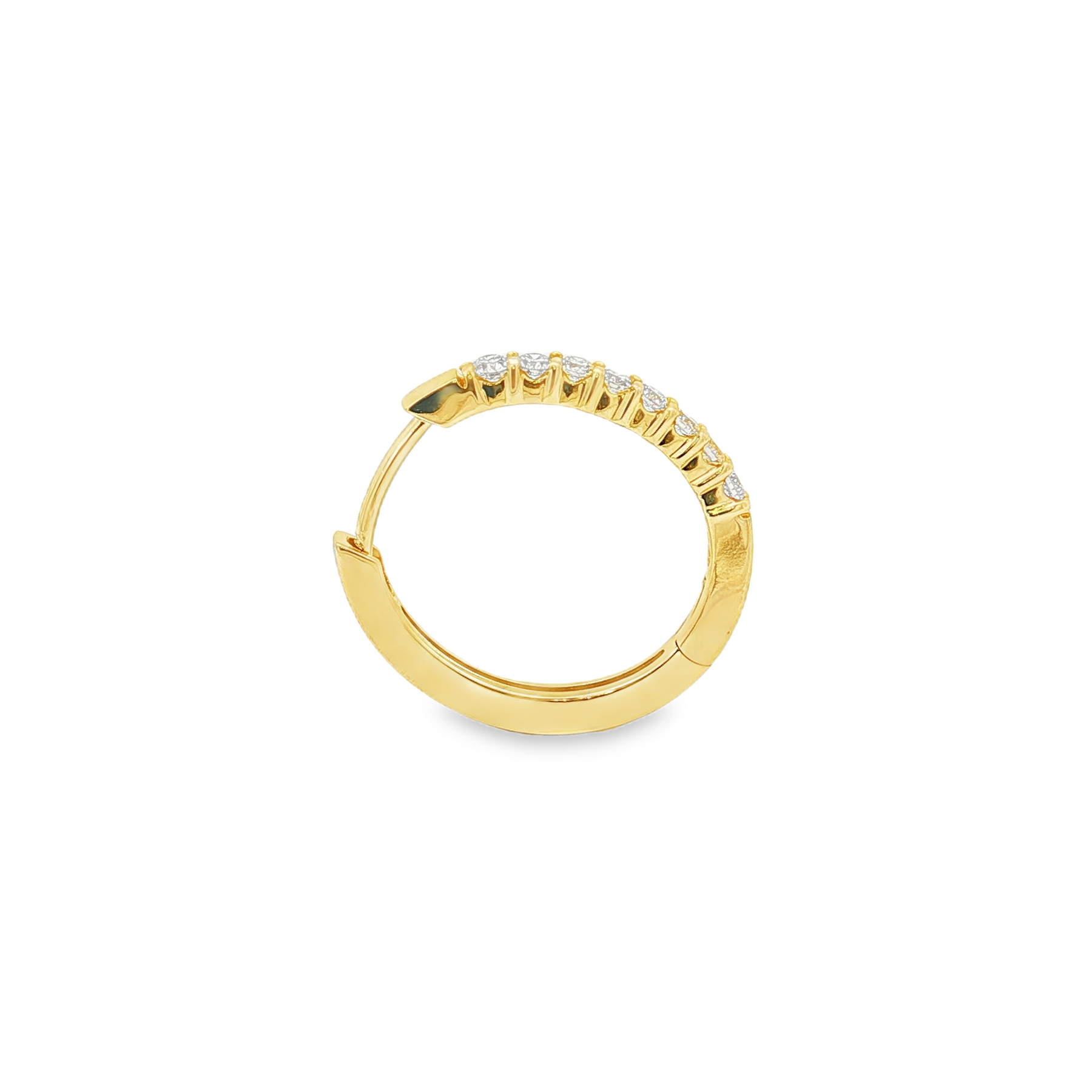 Crafted in radiant 14K yellow gold, these sleek diamond earrings bring timeless sparkle to your collection. With a combined .48ct of round brilliant diamonds, they offer elegance that shines day or night. Details: šŸ’Ž Diamond Total Weight: .48ct round brilliant 🟔 Metal: 14K yellow gold šŸ“ Style: Sleek diamond set hoop design šŸŽ€ Gender: Ladies Use our web chat or text us at 937-898-8670 for sizing options.