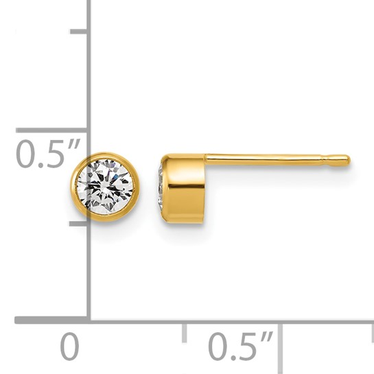 These stud earrings are crafted in 1/20 14K gold-filled metal and feature sparkling 4.5mm cubic zirconia stones set in sleek bezel settings. The clean, modern design offers a smooth profile that sits comfortably on the ear while delivering timeless brilliance. Finished with secure post backs, these earrings are perfect for everyday wear, second piercings, or effortless layering.