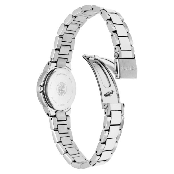 Crafted in sleek stainless steel, this Citizen Eco-Drive ladies’ watch blends everyday durability with elegant style. The luminous mother-of-pearl dial features silver-tone markers, a date display at 3 o’clock, and luminous hands for easy reading in any light. Powered entirely by Eco-Drive technology—meaning it never needs a battery—this timepiece offers reliable performance with water resistance to 100 meters. Finished with a comfortable stainless steel bracelet, it’s the perfect mix of beauty and practicality.
