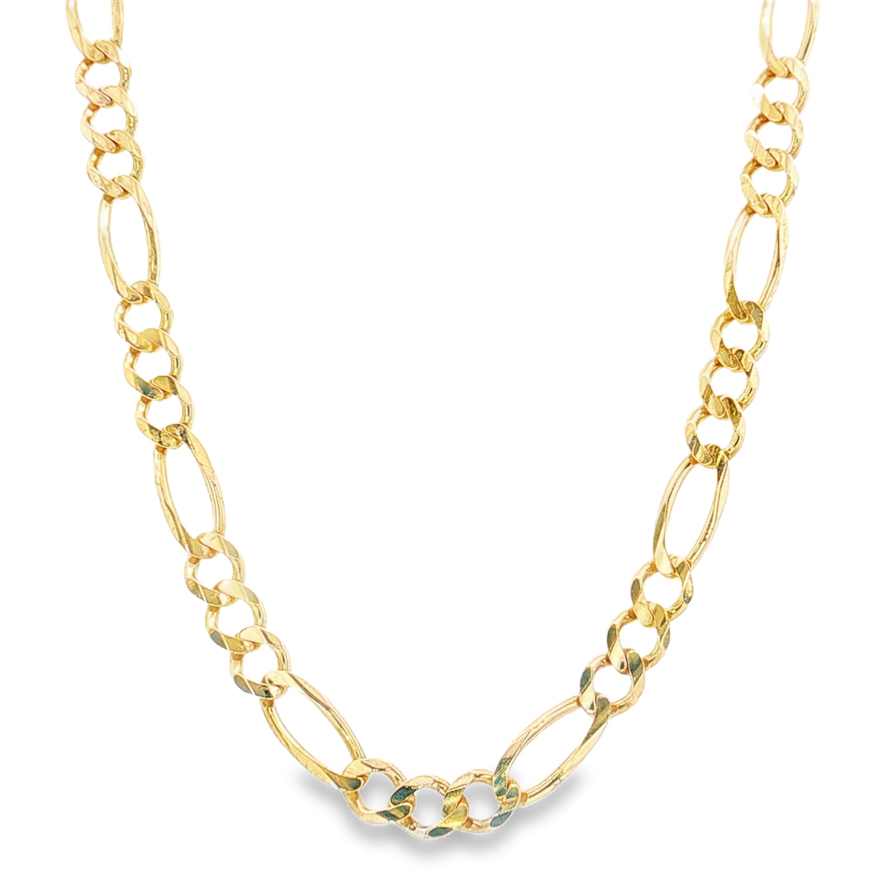 This estate 10K yellow gold Figaro necklace offers a bold, classic look with its 6.6mm links and substantial 24-inch length. Crafted in the traditional Figaro pattern—alternating long and short links—it delivers a timeless style with a rich gold shine that only estate jewelry can offer. Perfect worn on its own or layered with other favorites.