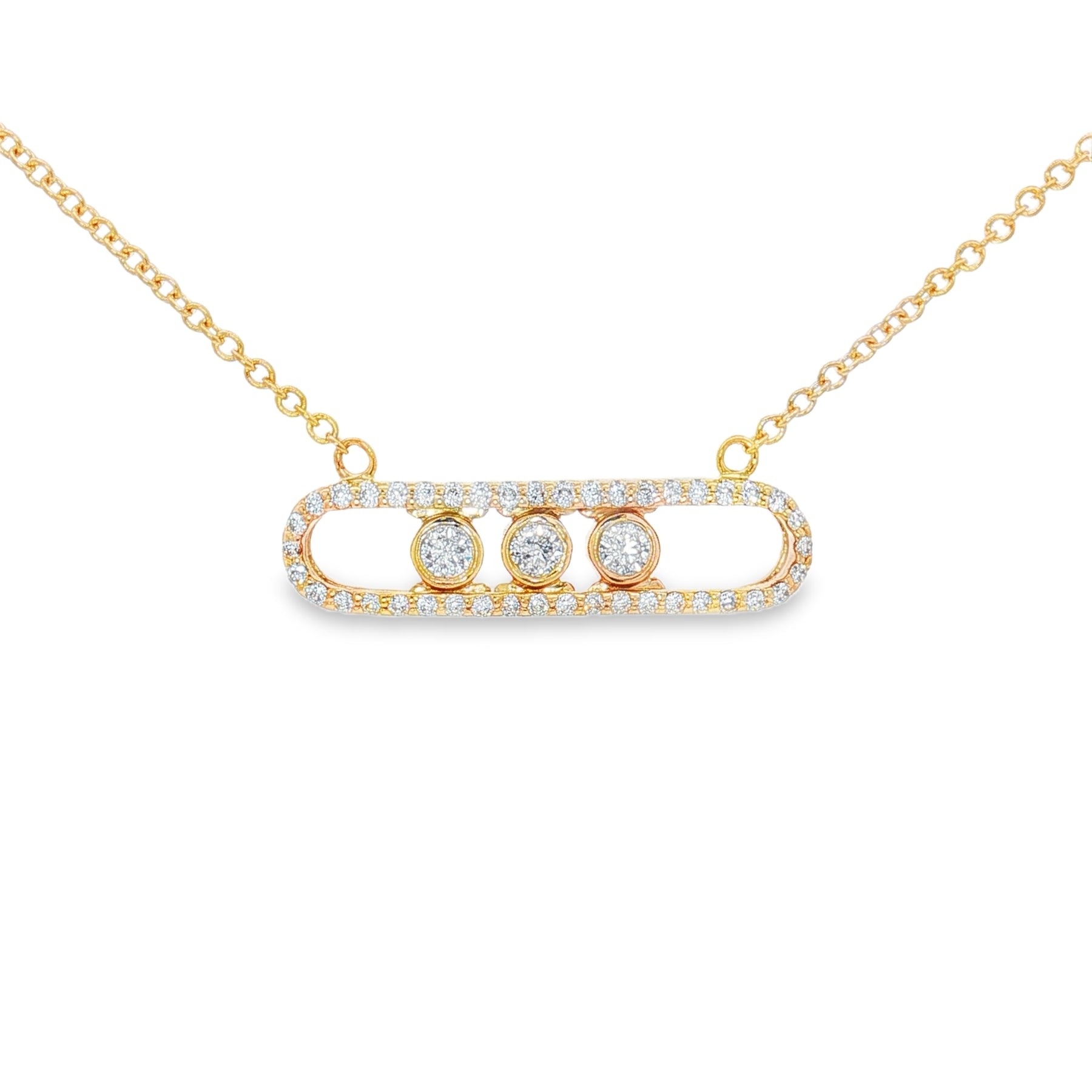 Crafted in 14K yellow gold, this elegant bar necklace sparkles with .37ct of round diamonds in bezel and pavé settings. The modern, linear design is timeless and versatile, making it a perfect layering piece or a standalone statement.