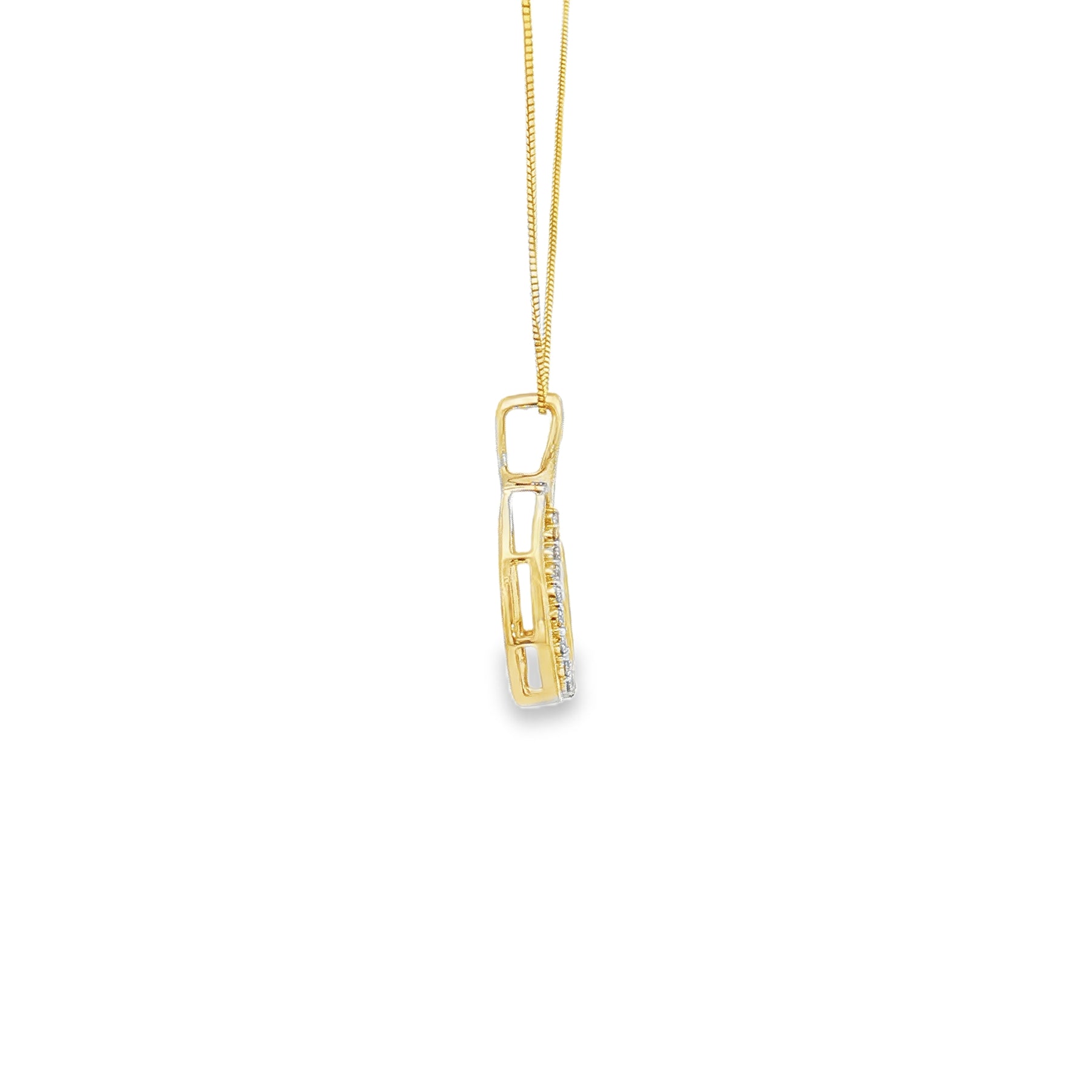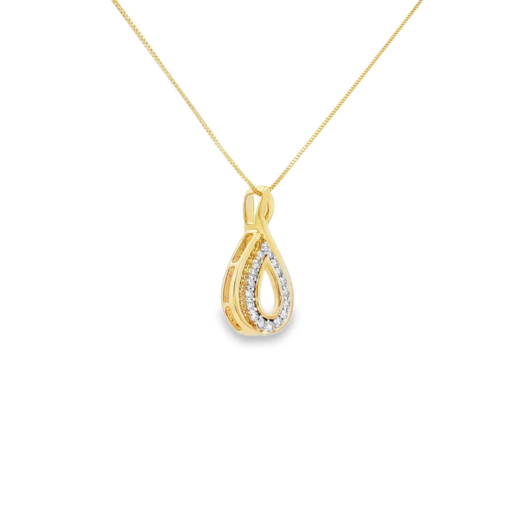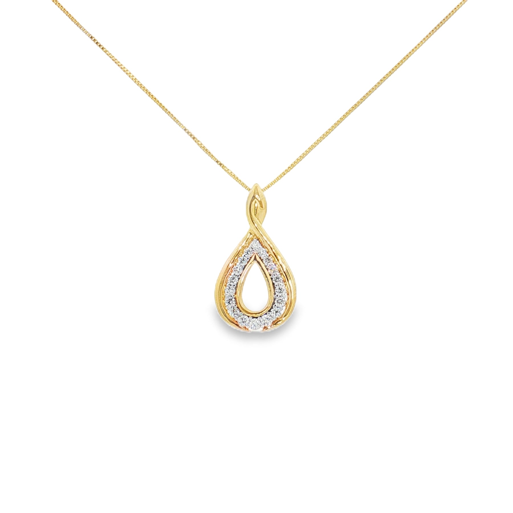 This 14K yellow gold diamond pendant is a timeless expression of elegance. Featuring a delicate teardrop shape set with .26 carats of sparkling diamonds, it hangs gracefully on an 18" chain secured with a spring ring clasp. A versatile piece, it pairs beautifully with everyday attire or enhances a formal look with its refined brilliance.
