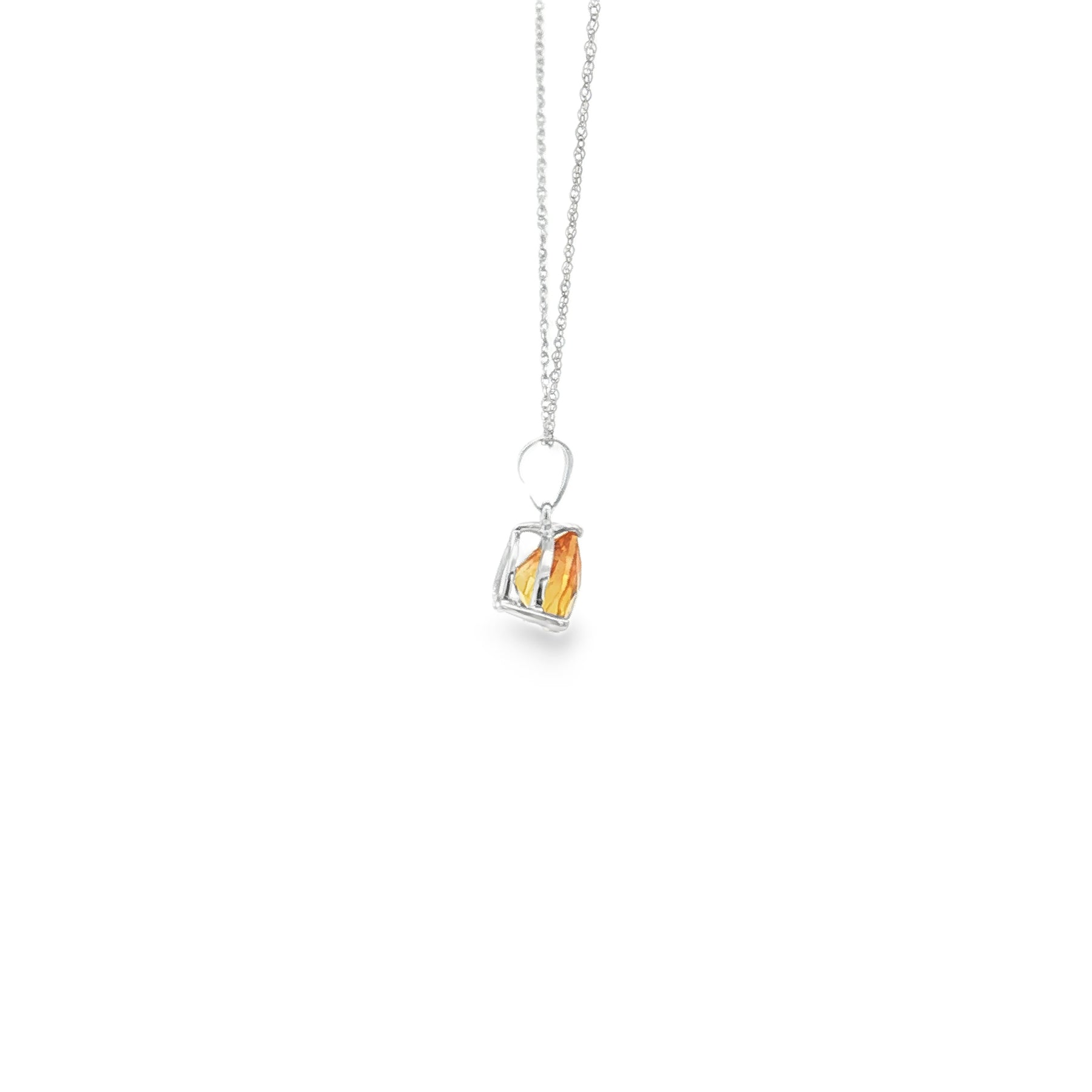 This pendant glows with the warm, golden brilliance of citrine, beautifully cut into a trillion shape that radiates light from every angle. Set in 14K white gold and suspended from an 18" chain with a secure spring ring clasp, this necklace adds a vibrant, sunny elegance to any look.