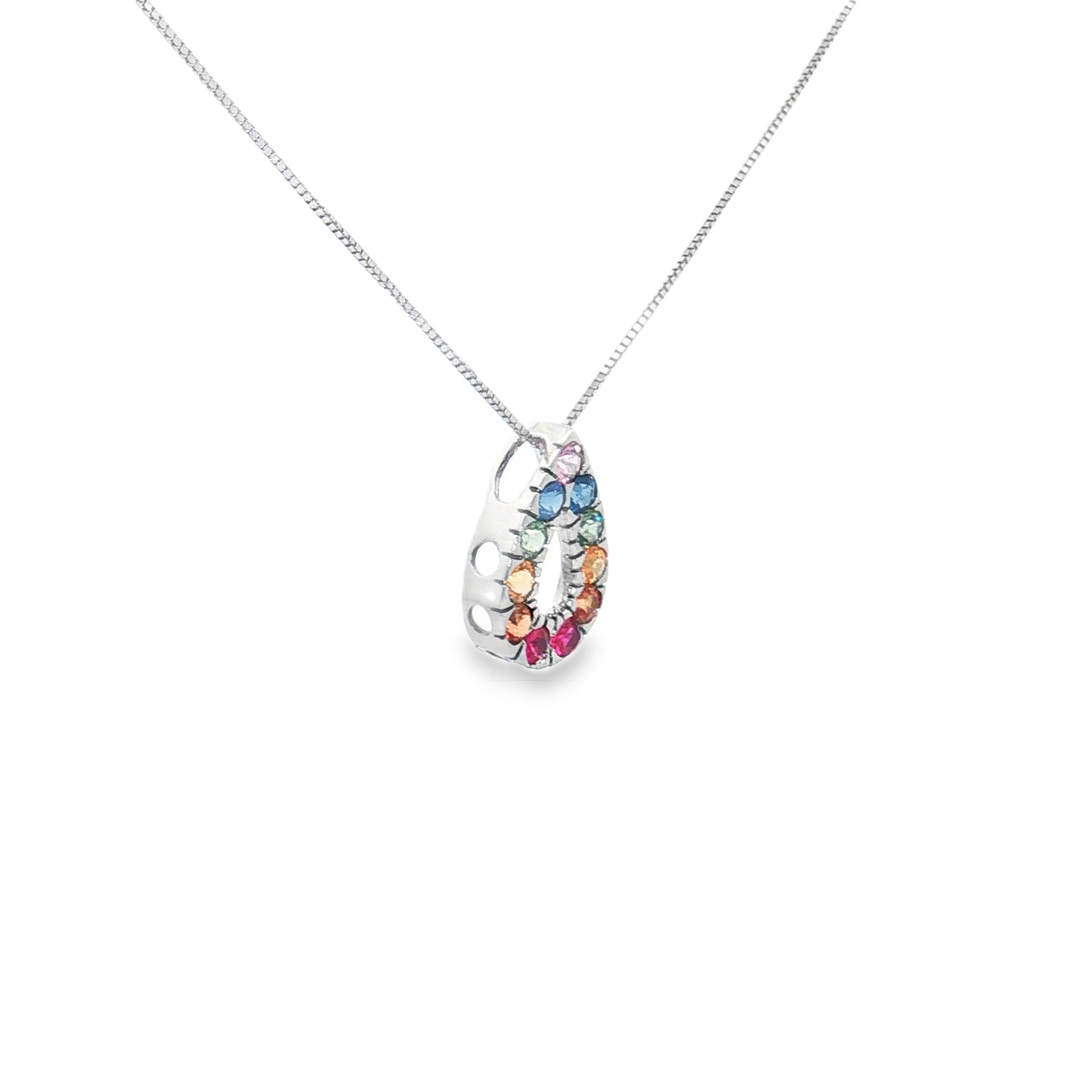 A vibrant expression of color and elegance, this pendant features a stunning teardrop design set with 1ct total weight of multi-color sapphires. Crafted in 14K white gold and suspended from an 18" chain with a secure spring ring clasp, it’s a joyful piece that brings a pop of color to any outfit. Details: 🌈 1ct total weight multi-color sapphires in rainbow hues πŸ’Ž Teardrop pendant design with brilliant sparkle βšͺ 14K white gold setting for lasting beauty ⛓️ 18" chain with spring ring clasp for security 🎁 A cheerful and meaningful gift for any occasion