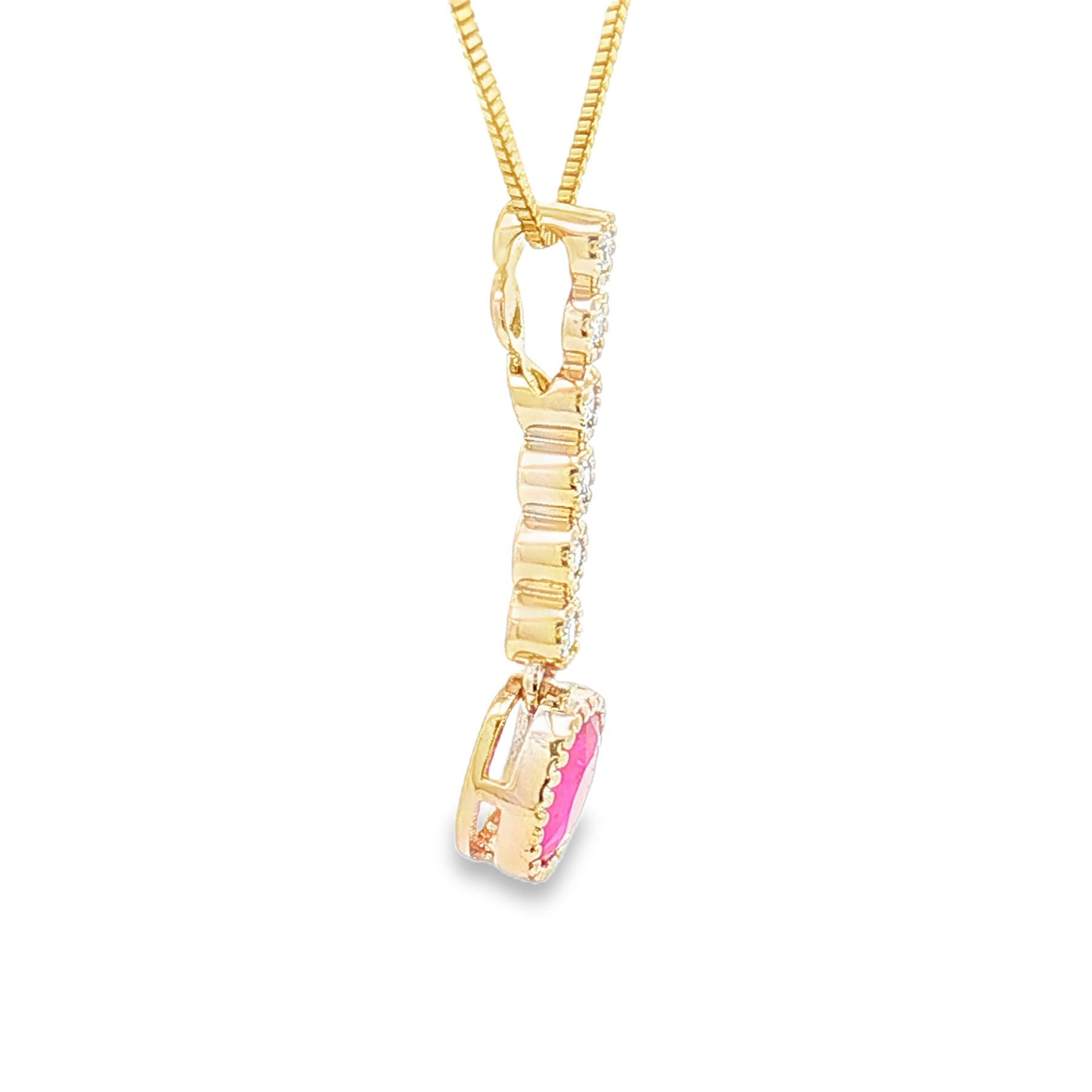 ✨ Design: Vertical diamond drop with oval ruby