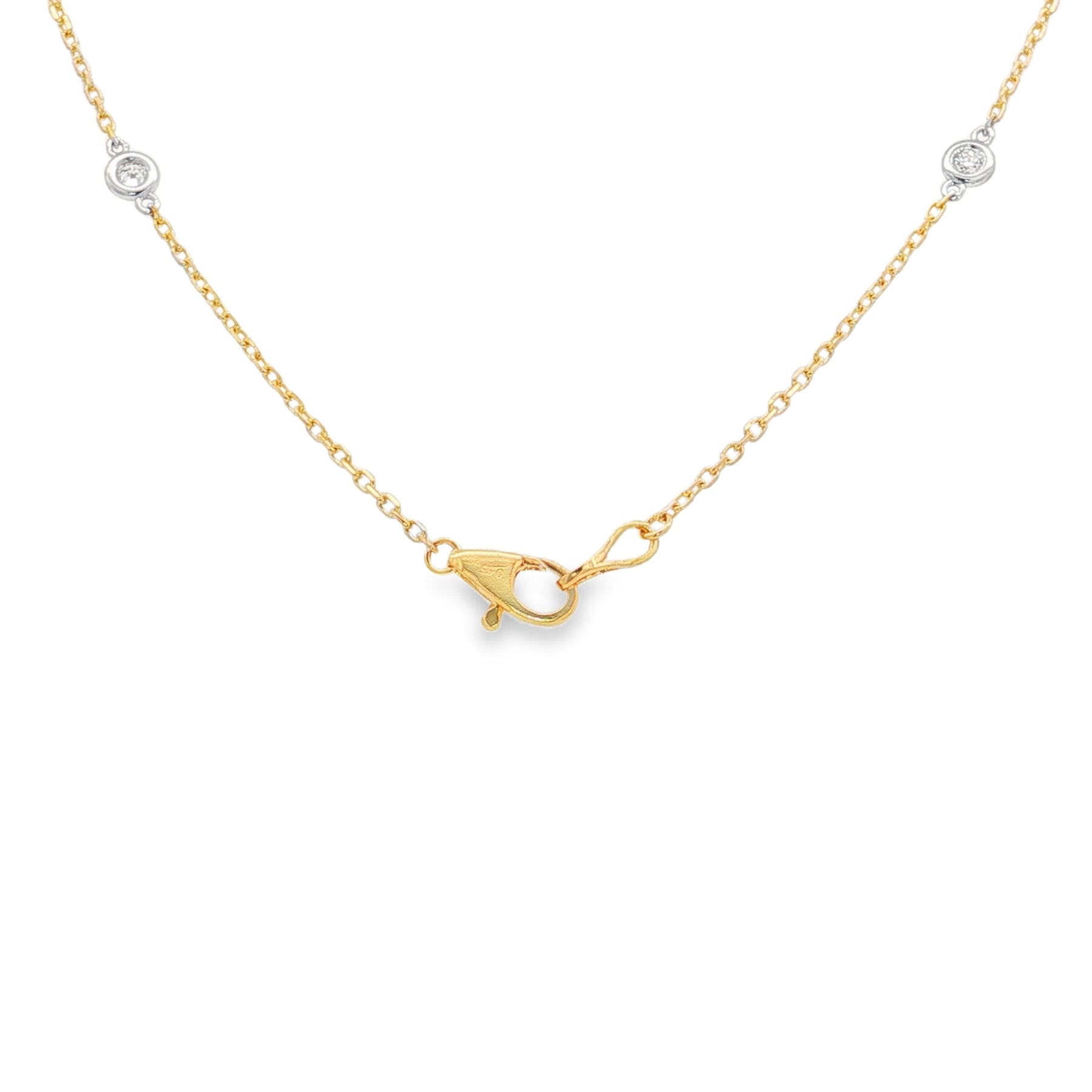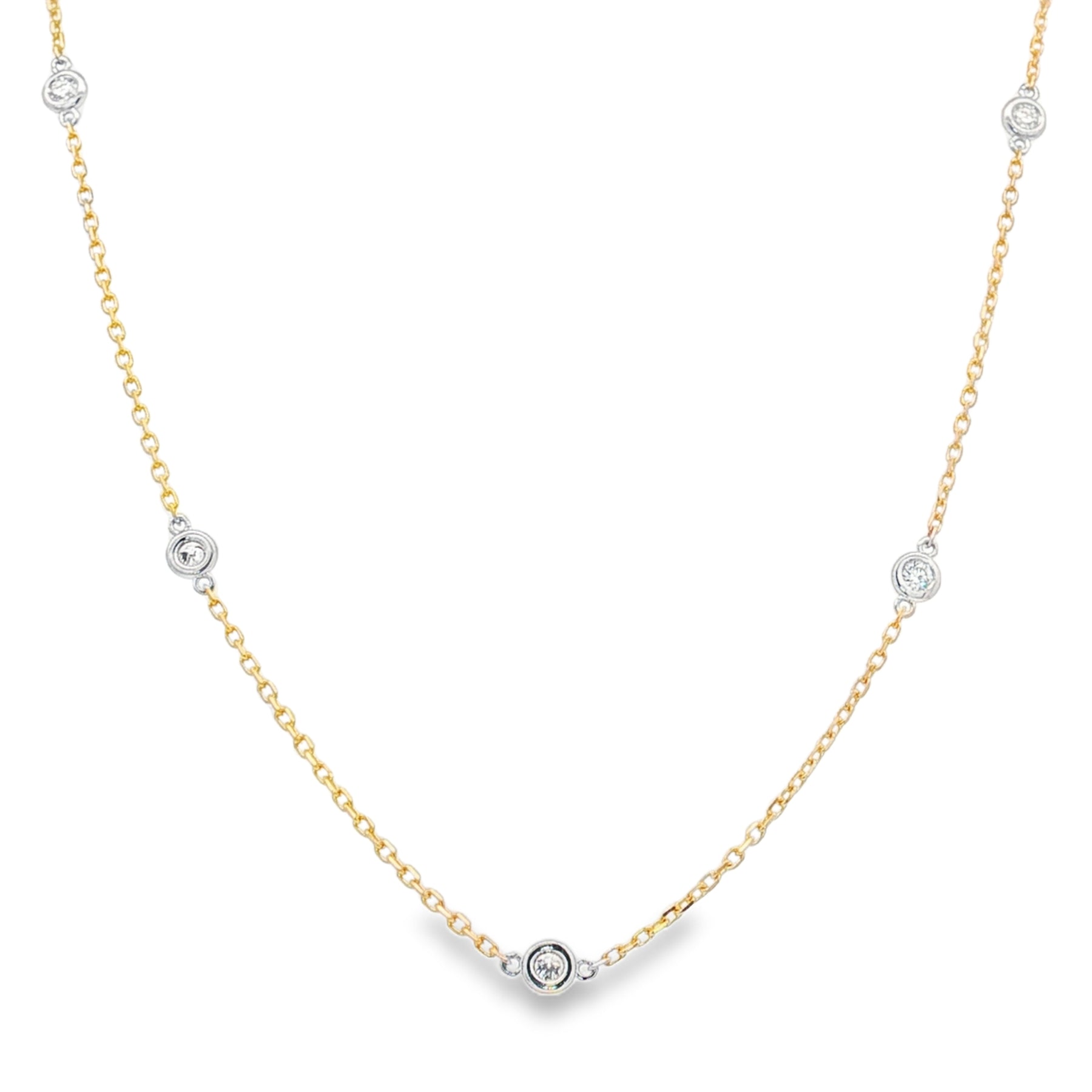This timeless necklace blends elegance with everyday versatility. Crafted in 14K yellow and white gold, the design features bezel-set round diamonds along an 18" chain, adding subtle sparkle and sophistication. Totaling .55ct, the diamonds are chosen for their brilliance and clarity, making this piece a beautiful staple in any jewelry collection.