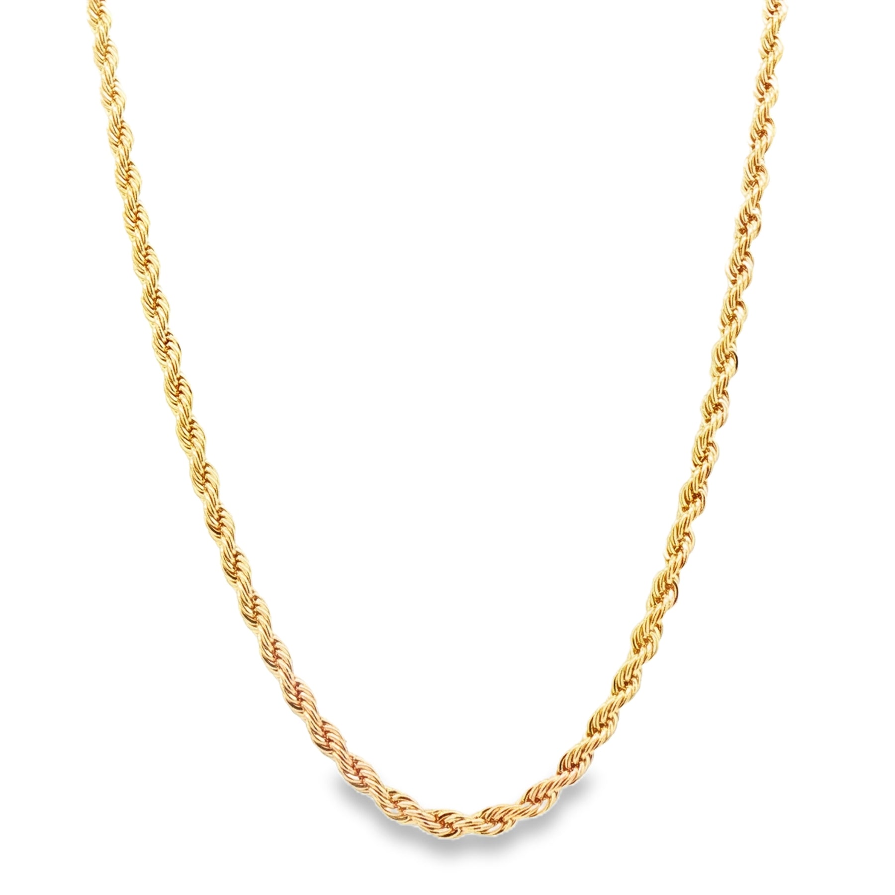 This elegant rope necklace is crafted in gold plated metal with a diamond-cut finish that adds subtle sparkle and texture. Lightweight and versatile, it’s perfect for everyday wear or layering with pendants and other chains.
