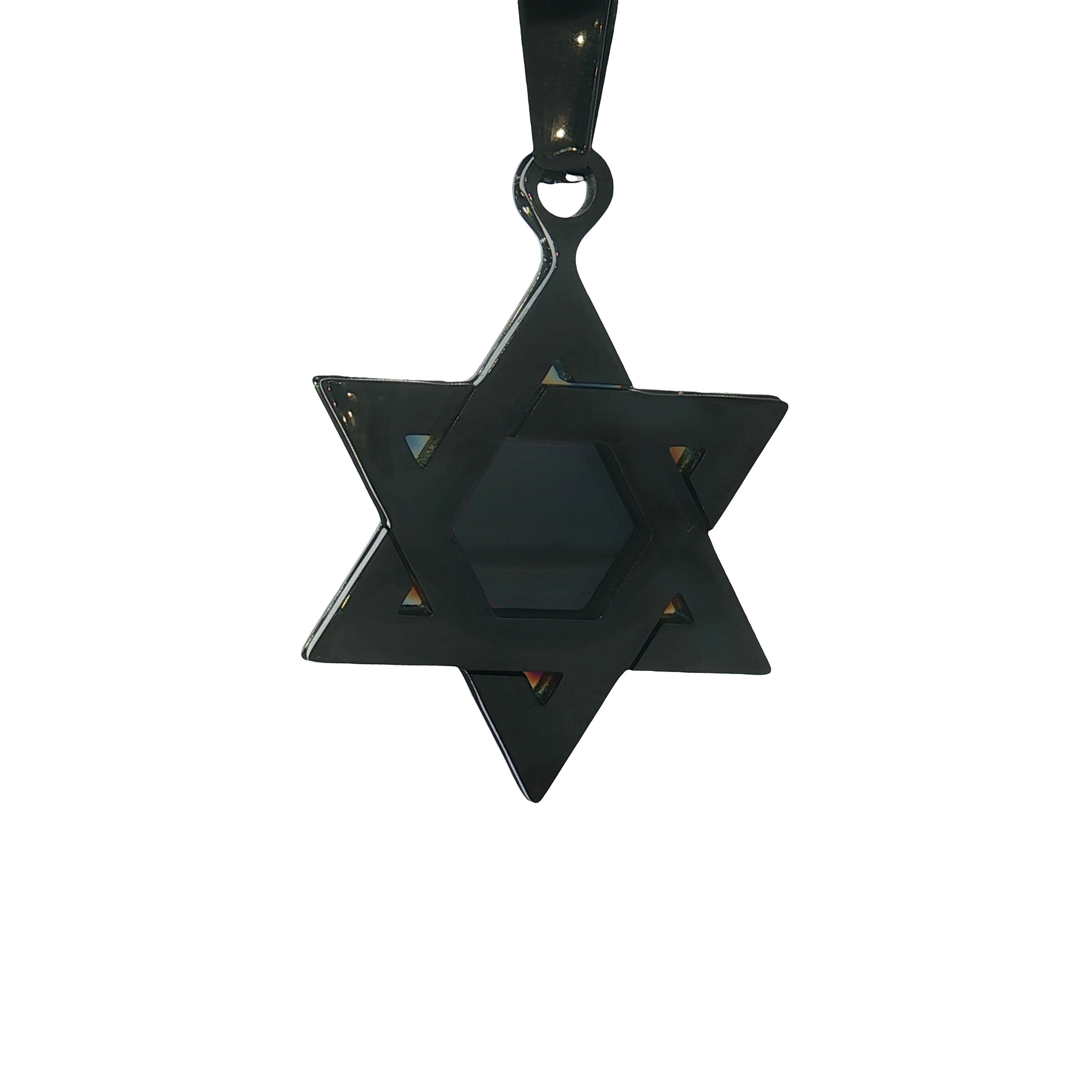 Crafted for both style and symbolism, this polished stainless steel Star of David necklace features a sleek black-plated finish and a 24" chain with a secure lobster clasp. Perfect for everyday wear or as a meaningful gift, it offers durability and timeless appeal.