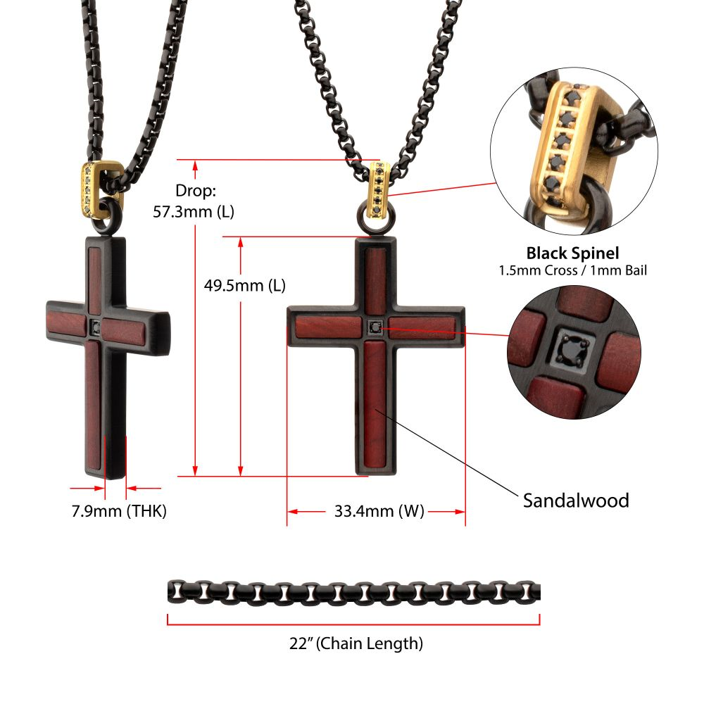 Men’s Black Steel Sandalwood & Spinel Cross Pendant