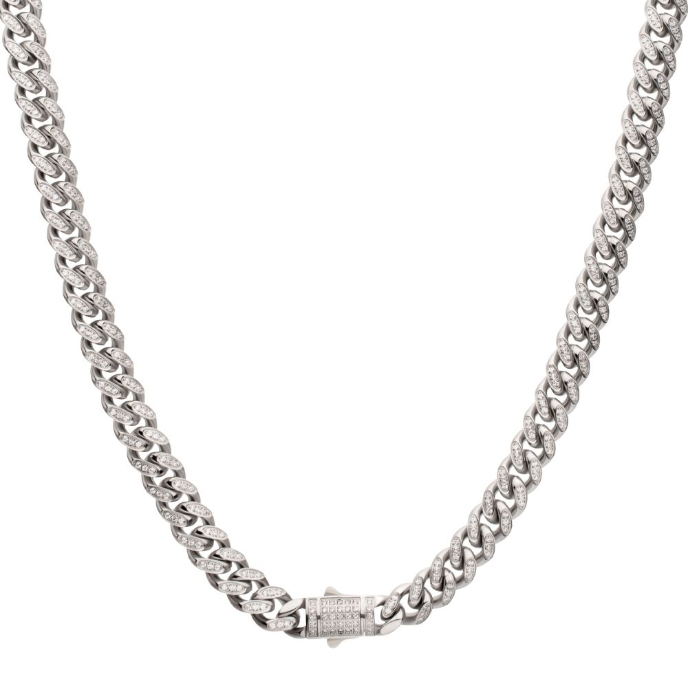 Stainless Steel 8mm CZ Miami Cuban Necklace