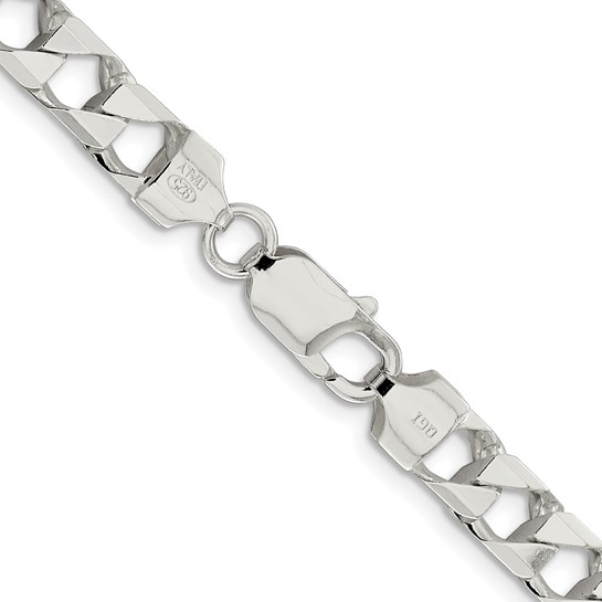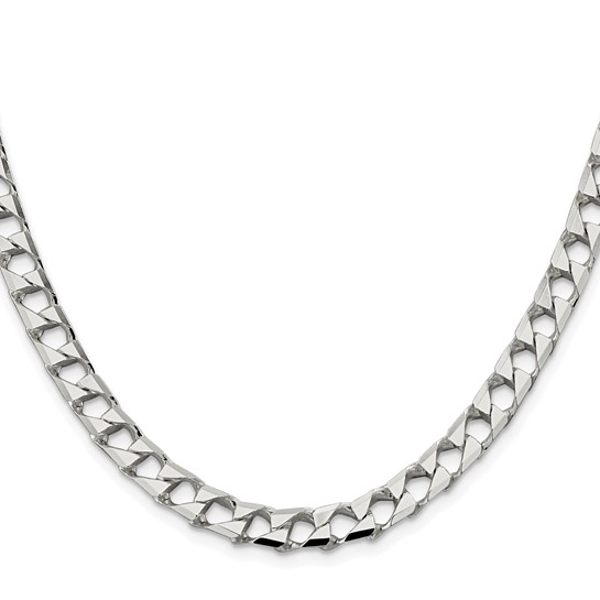 Bold and timeless, this sterling silver rhodium-plated curb chain features a distinctive 7.2mm diamond-cut square link design for extra shine and texture. The rhodium finish enhances durability and tarnish resistance, making it perfect for everyday wear or layering with a pendant. A strong clasp ensures a secure and comfortable fit.