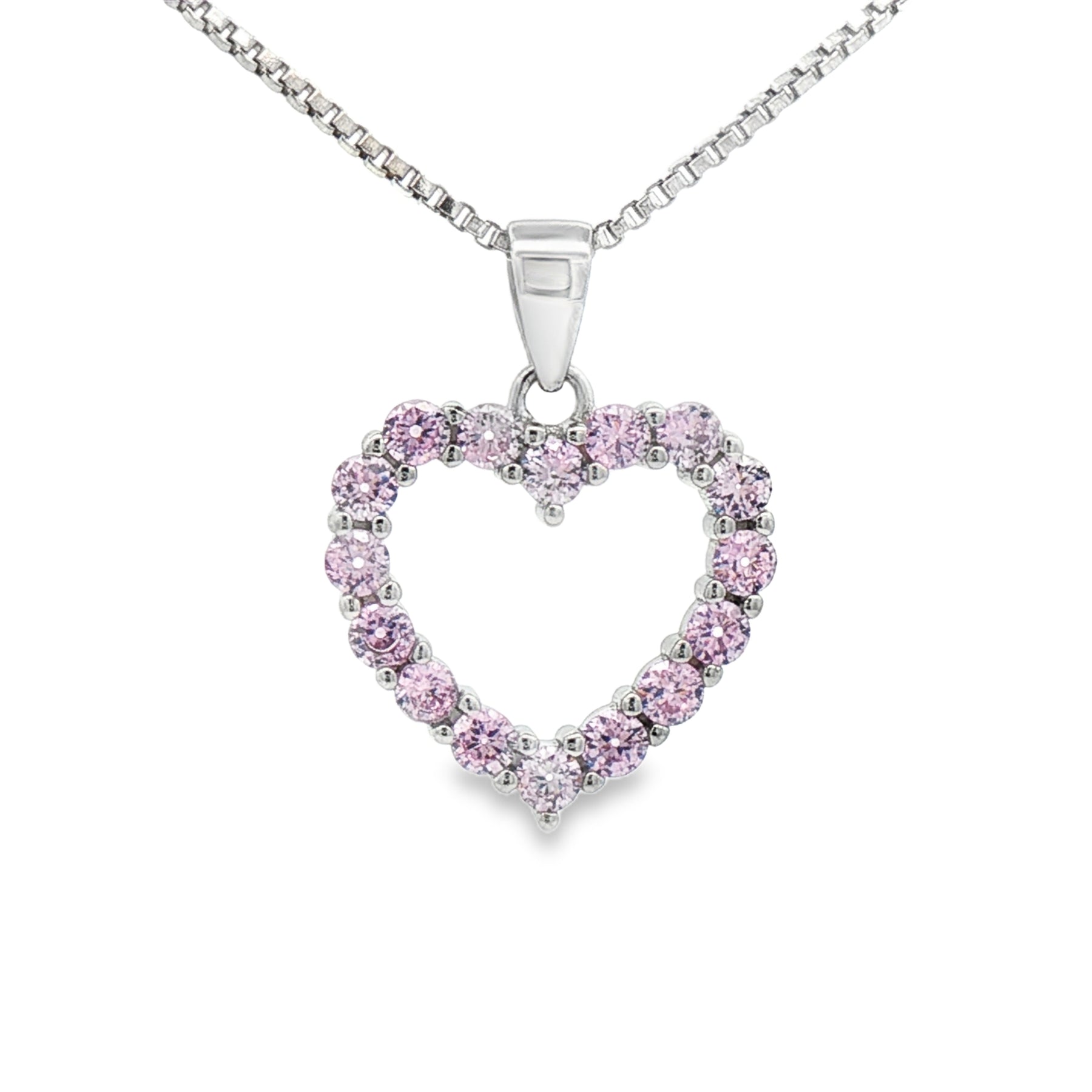 Delicate and full of charm, this sterling silver heart pendant sparkles with brilliant pink cubic zirconia stones that radiate warmth and romance. The open-heart design symbolizes love and grace, making it perfect for everyday wear or a thoughtful gift. Suspended from an 18-inch sterling silver box chain, itβs both timeless and feminine.