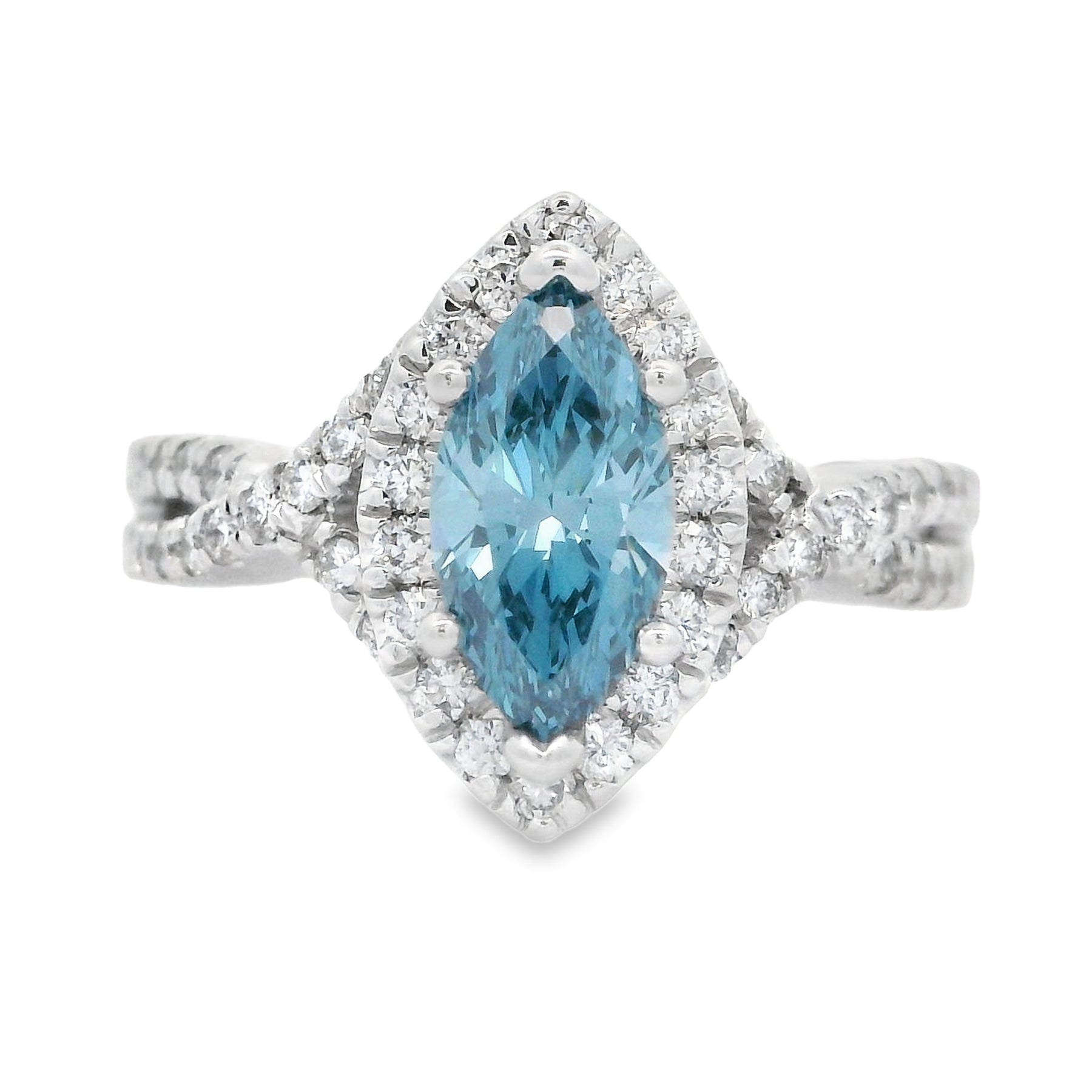Let your style speak boldly—this vibrant marquise-shaped blue diamond ring is a rare blend of elegance and edge.