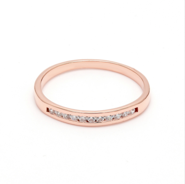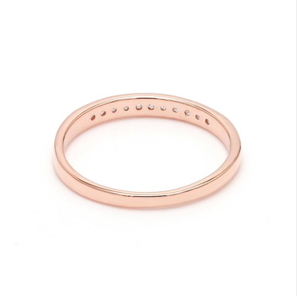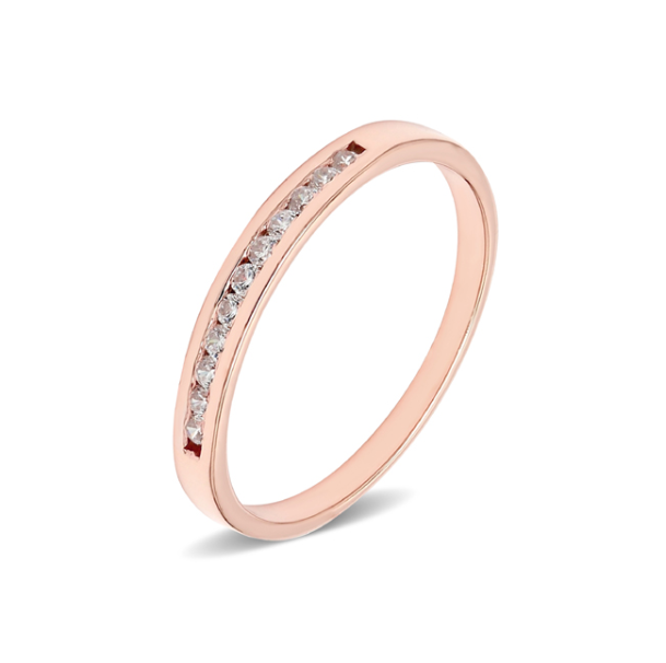 Delicate and modern, this 14K rose gold stackable ring sparkles with .12 carats of lab-grown diamonds in a sleek channel setting. Its minimalist design makes it perfect for stacking, gifting, or wearing solo as a chic accent.