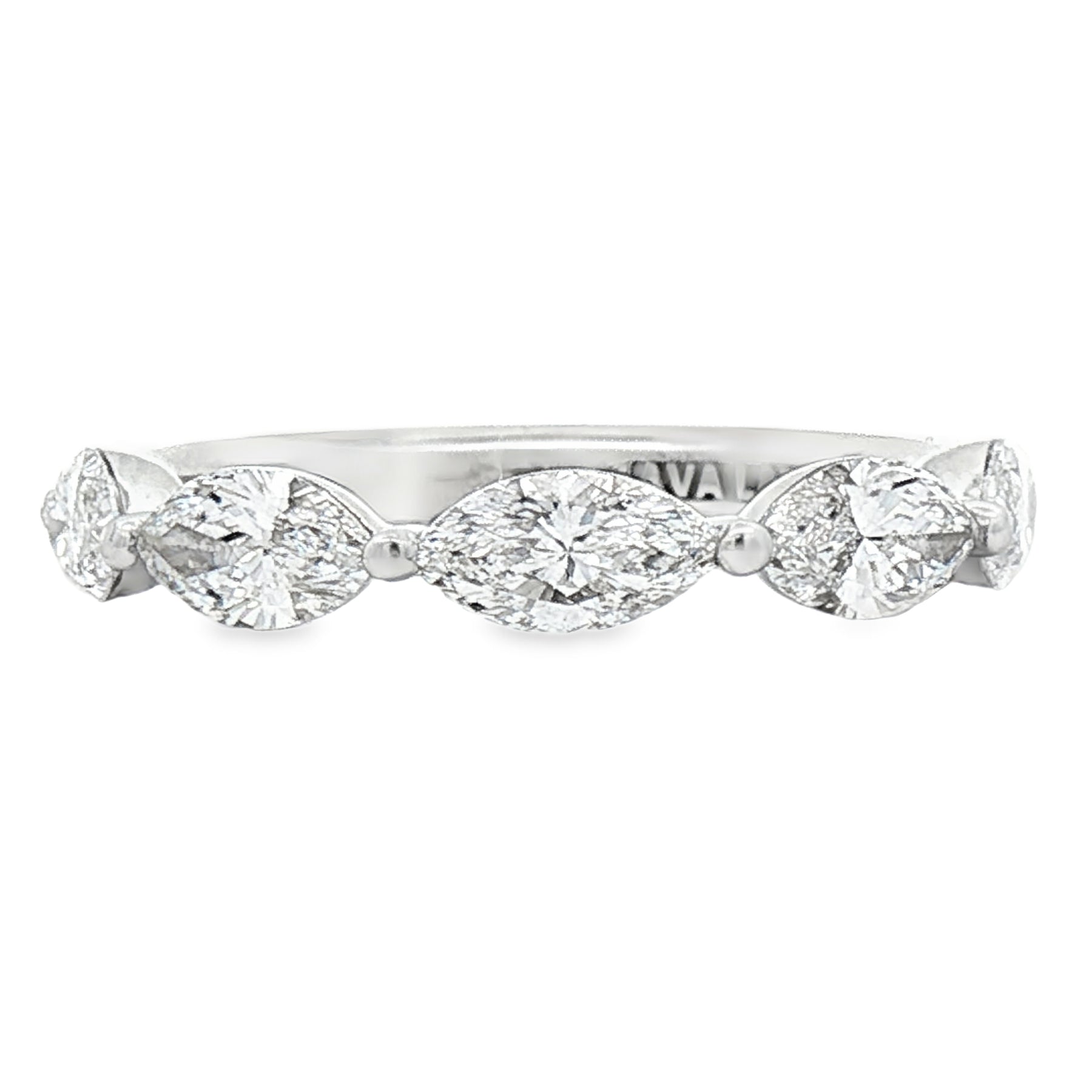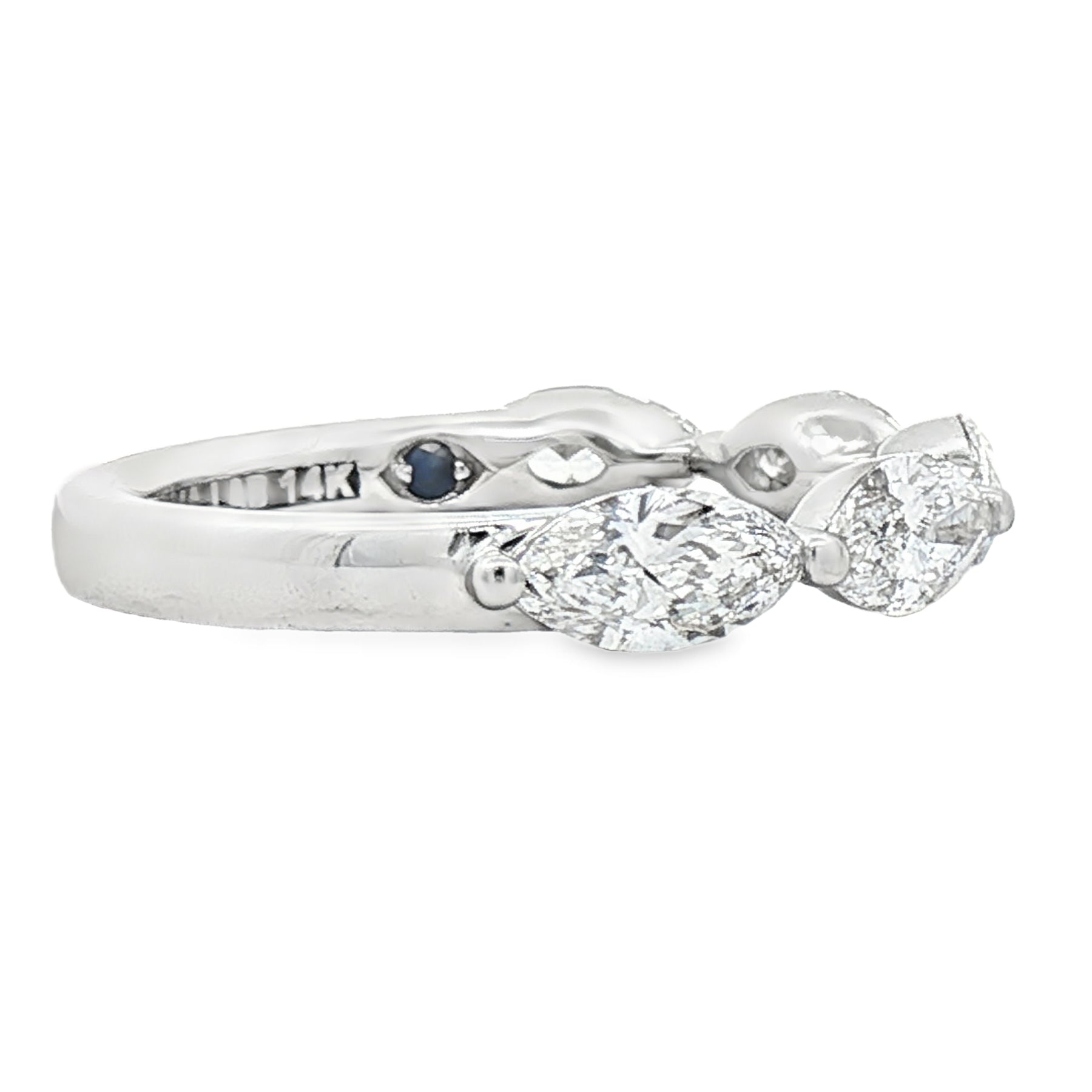 This refined 14K white gold ring showcases 1.6 carats total weight of lab-grown marquise cut diamonds, arranged in an elegant shared-prong design that creates a flowing, leaf-like silhouette across the band. The marquise shape enhances brilliance while offering a distinctive, elongated look that feels both classic and modern. Finished in polished 14K white gold and sized at 6.5, this ring is a beautiful choice for an engagement band, anniversary ring, or sophisticated stackable accent.
