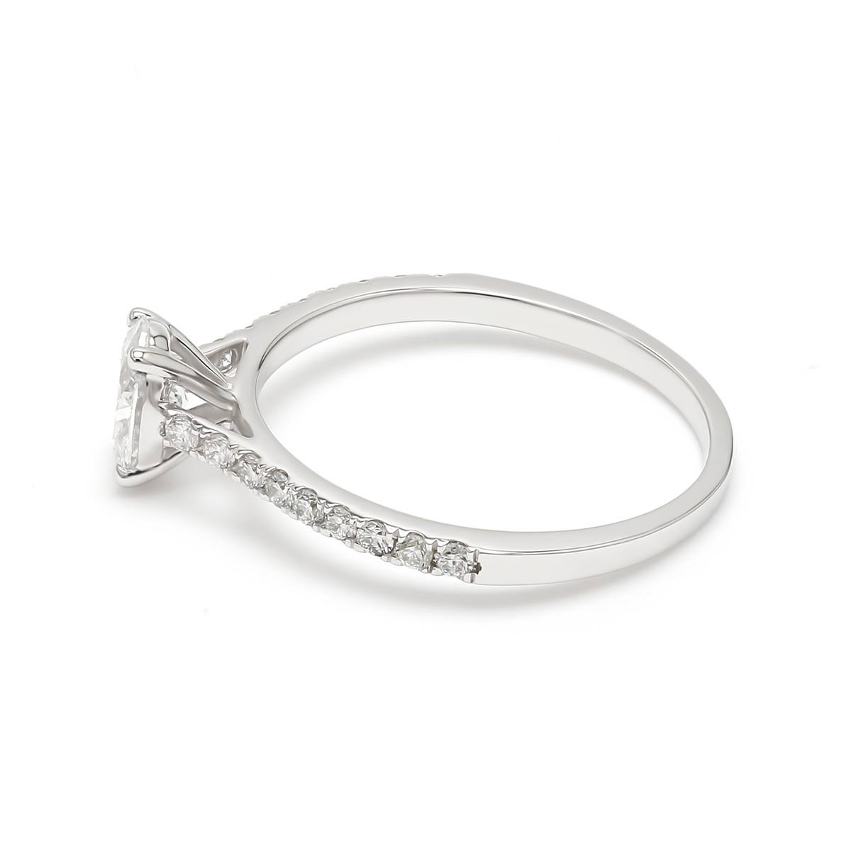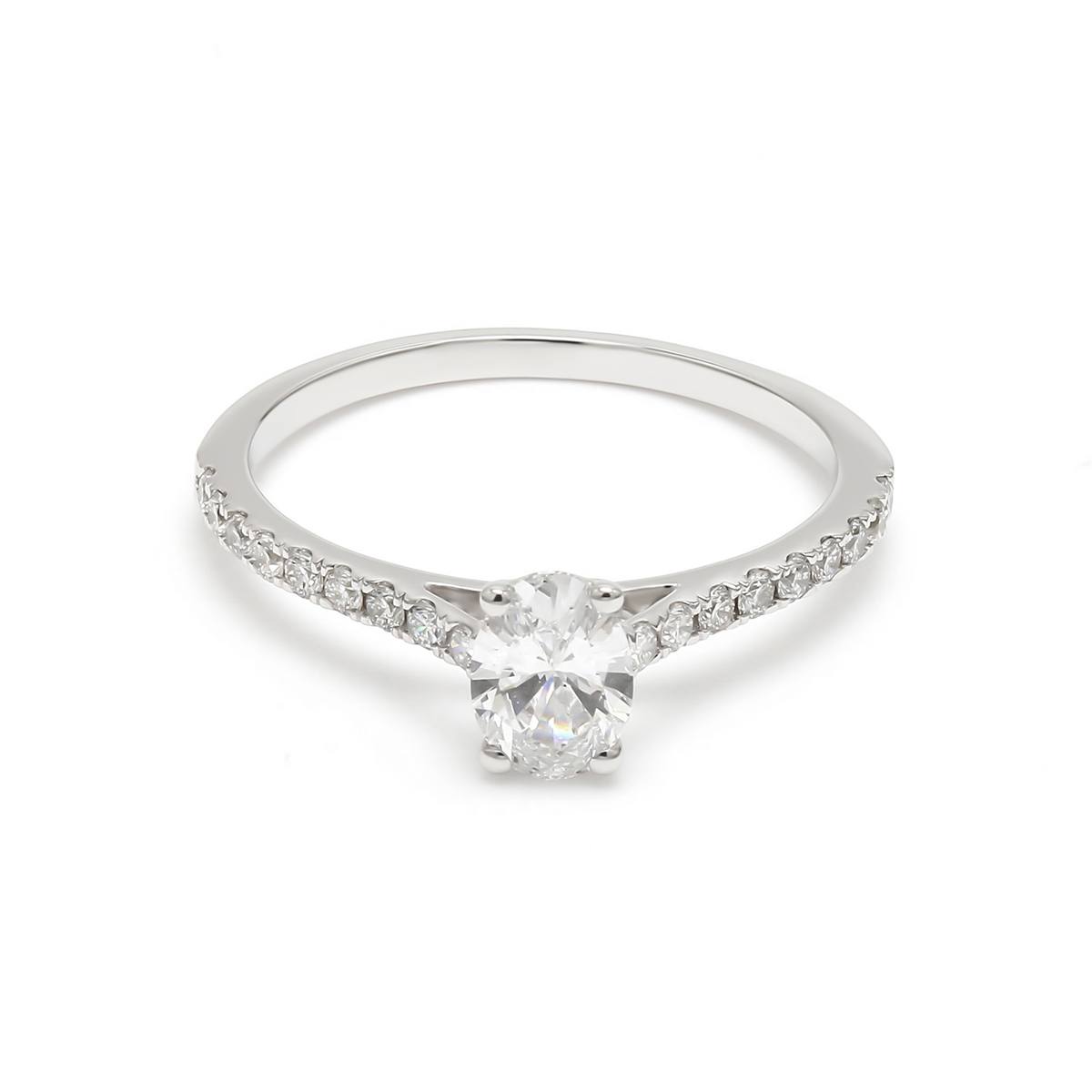 Sleek and timeless, this lab-grown diamond ring brings radiant sparkle to a classic silhouette. Set in 14K white gold, it features a .50ct oval center diamond with F color and VS1 clarity, accented by a diamond-studded band for added brilliance. With a total weight of 0.75ct, this elegant piece works beautifully as an engagement ring or a meaningful promise ring.