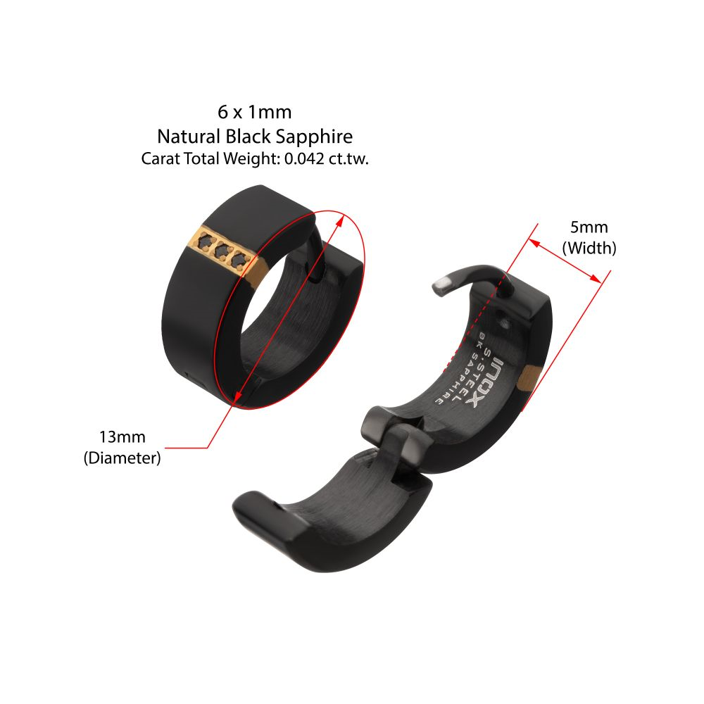 Bold, modern, and unmistakably powerful — these Kraken Collection black IP stainless steel huggie earrings deliver sleek sophistication with a mythic edge. Each earring features an 18K gold-IP accent band set with five genuine 1mm black sapphires, bringing subtle shine to the matte finish. Durable, secure, and designed to make a statement, they’re the perfect everyday accessory for the man who isn’t afraid to unleash his inner legend.